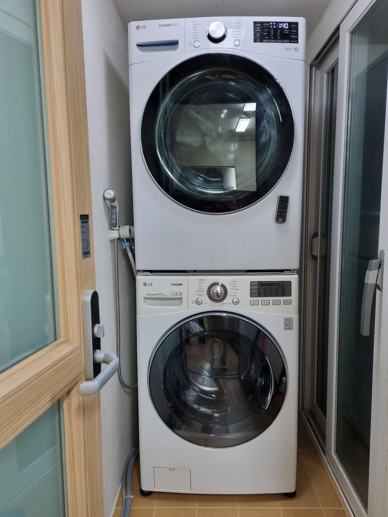그래서 이사와 함께 주부들이 신세계를 만나볼 수 있다는 건조기를 들였다. 세탁을 하고 바로 건조기에 넣으면 뽀송뽀송한 수건, 먼지가 보이지 않는 옷, 빵빵해진 패딩으로 변신해서 나왔다. 변신한 빨래들을 옷장에 넣는 일은 즐겁기까지 하다.^^