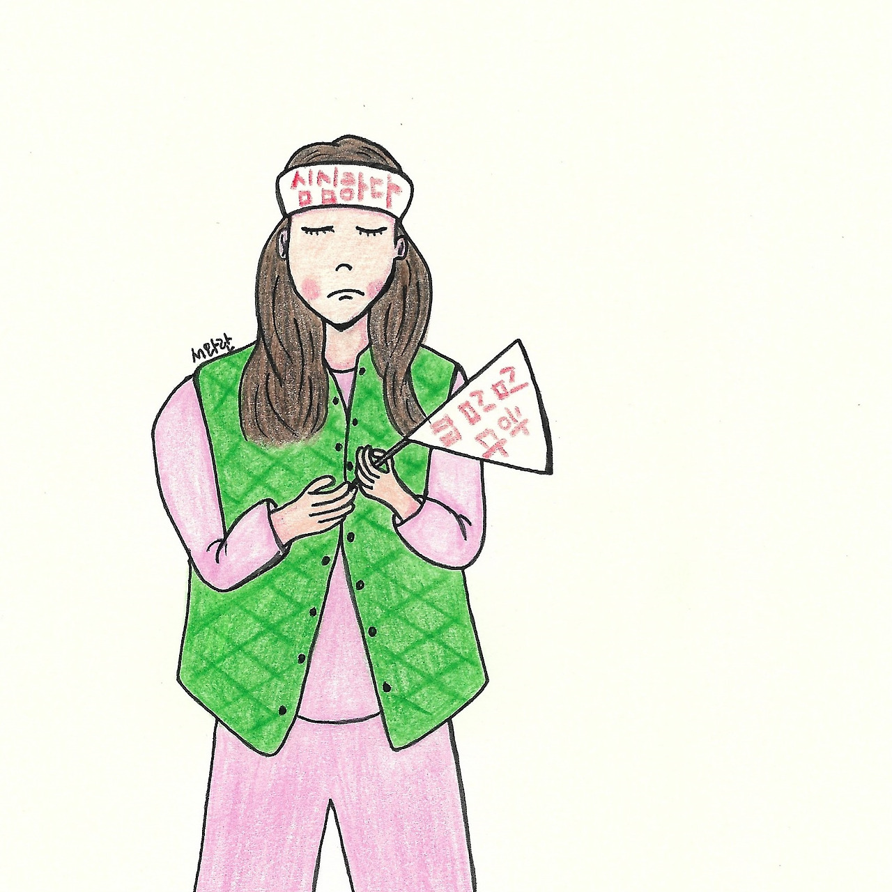 종이로 만든 머리띠와 깃발엔..