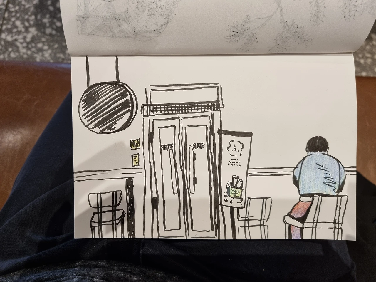 벽면을 바라보는 자리에 앉아