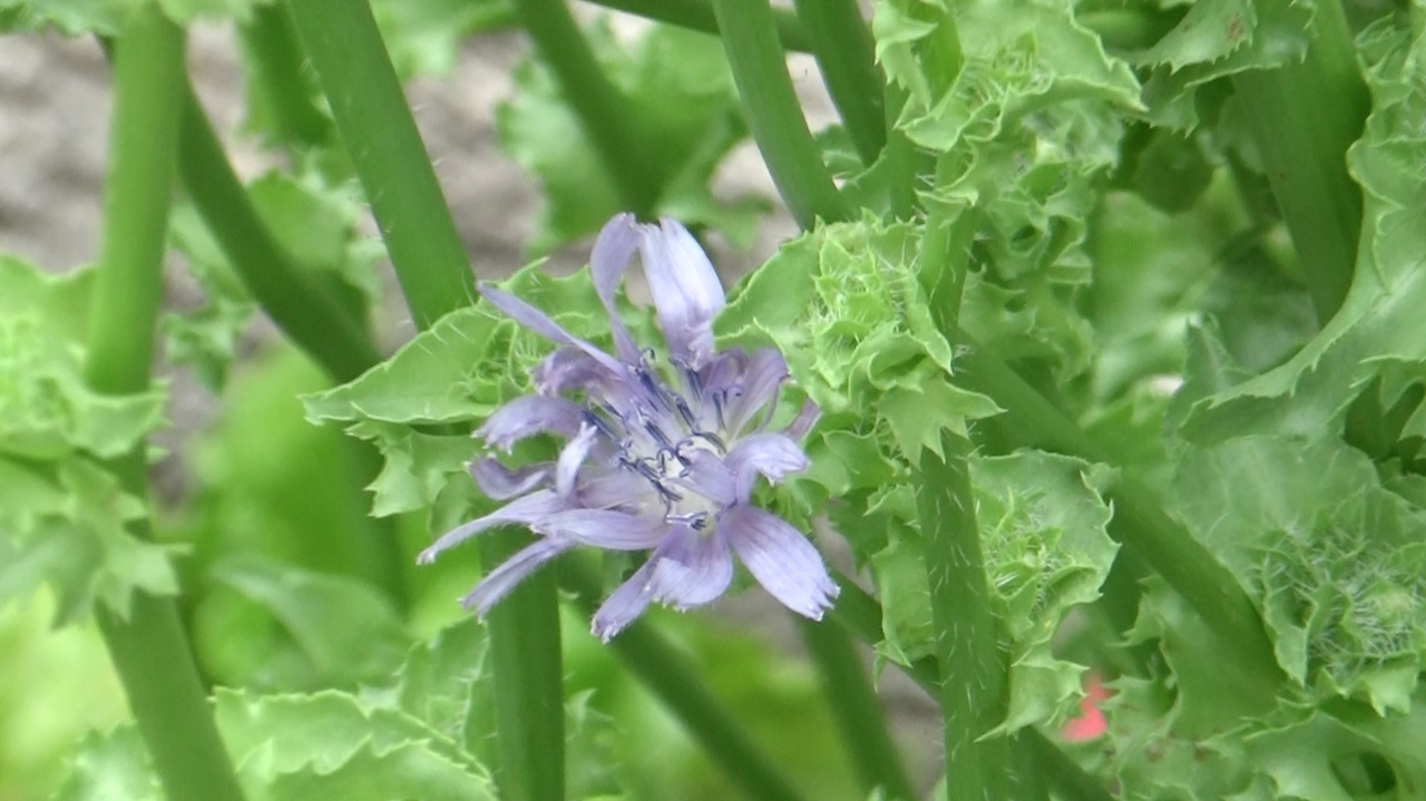 밭에 보기 드문 낯선 연보랏빛 꽃이 폈다. 어떤 꽃일까 봤더니 치커리에서 꽃이 폈다. 텃밭을 하면 어쩔 수 없이 관찰을 많이 하게 되는데 작물의 꽃을 보는 게 참 놀라운 경험이다. 루꼴라꽃도 그렇고 쑥갓꽃도 그렇고 이번엔 치커리꽃이라니 이렇게 연보랏빛을 가졌을 것이라고는 상상도 못 했다. 채소와 허브를 기르면 밭은 그저 초록빛일 거라고만 생각해서 꽃도 키우려고 했던 것인데 채소 만으로도 이렇게 다채로울 줄은 몰랐다.