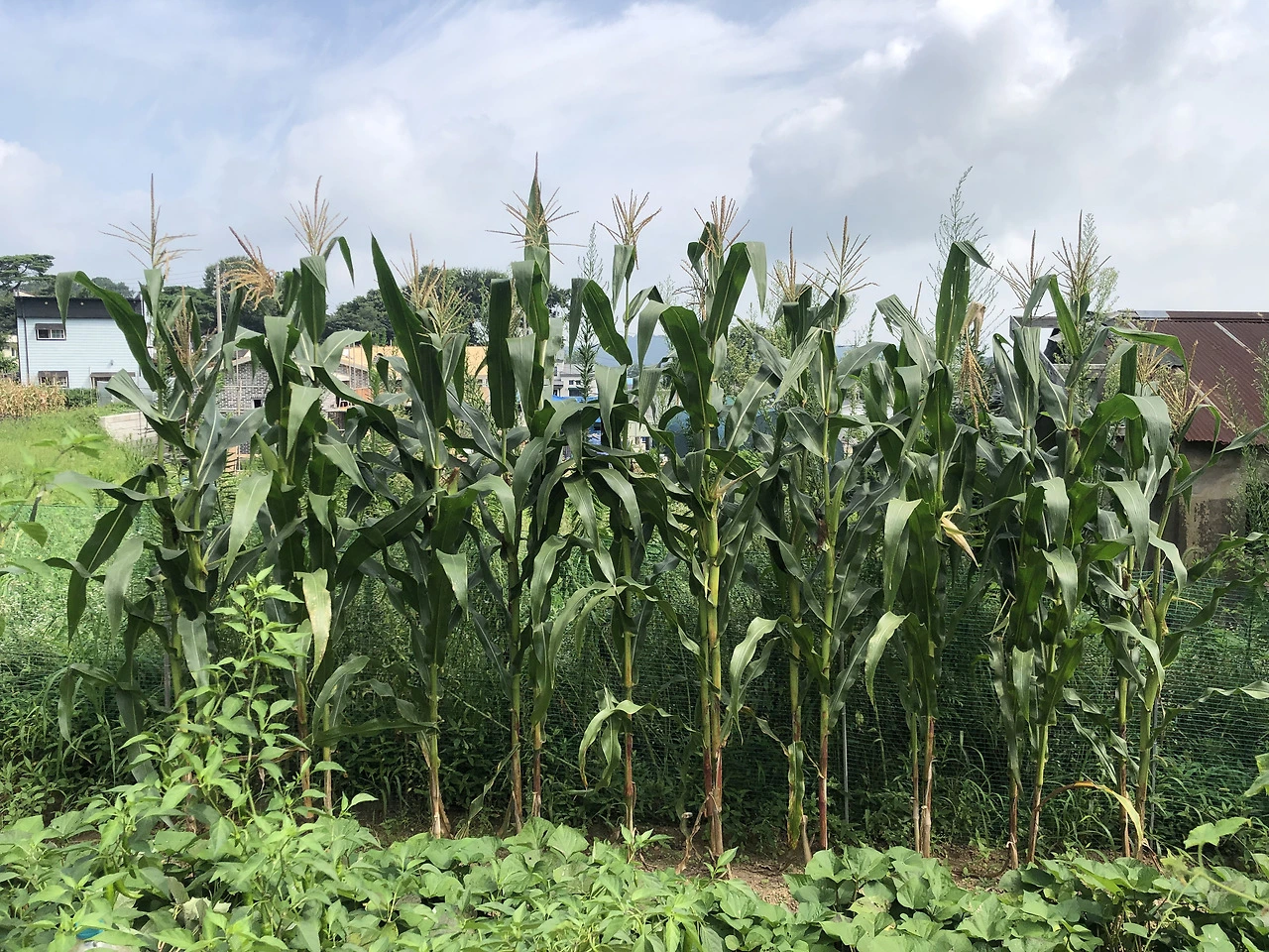밭의 가장자리를 따라 봄에 심은 어린 옥수수 모종이 내 키를 훌쩍 넘었다. 조용하게 혼자 쑥쑥 자라났다. 크고 기다란 이파리에 가려 보이지 않던 옥수수 열매는 벌써부터 수염이 가득이다. 시험 삼아 잎에 둘러싸인 열매를 살짝 들춰보니 속이 꽉 차오르고 있다.