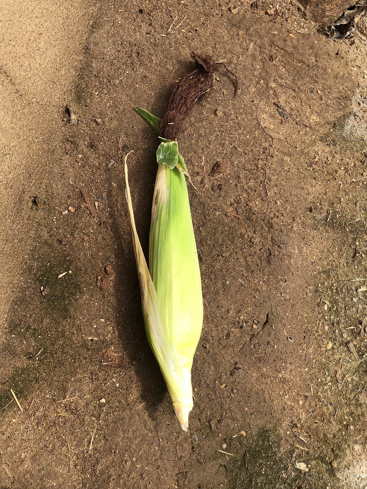 심어 두고 주변에 고구마잎이 너무 자라 다가가기도 어려워서 그냥 뒀더니 알아서 옥수수 열매를 맺었다. 노란 옥수수가 빼꼼 반겼다. 아직까지 차오른 열매는 단 한 개. 나머지 옥수수 알알이 차오르려면 조금 더 시간이 필요하다.