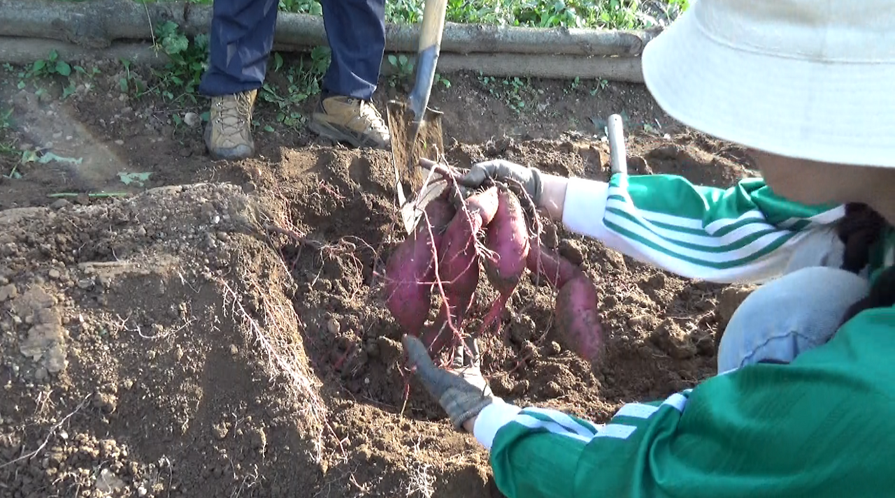 삽으로 흙을 들어 올릴 때 무언가가 느껴진다. '이곳에 고구마가 있다'. 그렇다면 이젠 그 주변을 넓게 깊게 찔러서 공략한다. 그러면 점차 모습을 고구마는 모습을 드러낸다. 땅 속에서 반긴 고구마의 첫인상은 ‘줄줄이 고구마’였다. 이론적으로는 들었어도 실제로 보니 신기하기만 했다.