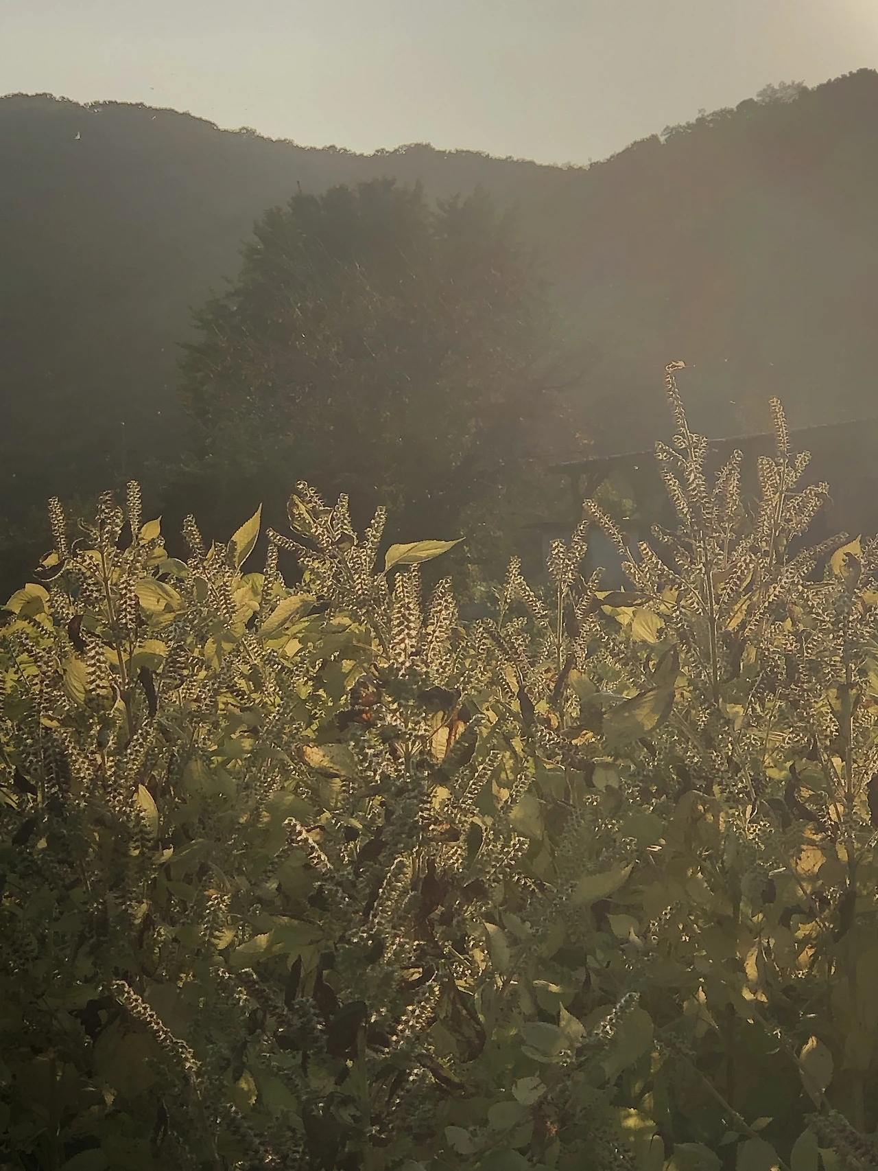 어쩔 수 없이 경험한다 생각하고 무작정 털었다. 한창 유행하고 있던 농사 예능프로그램 <콩콩팥팥>에서 들깨를 터는 장면을 보았었고 따라 흉내를 내보기로 한다. 프로그램에서 처럼 또 옆집 할머니댁처럼 많은 양이 아니니 대충 털어내도 될 듯해서 마음이 편했다. 창고에서 찾아낸 깨끗한 비닐을 깔고 살살 털어냈다. 후두두둑 깨 떨어지는 소리가 비 오는 소리 같기도 하고, 퍼지는 들깨향 그 자체가 힐링이다.