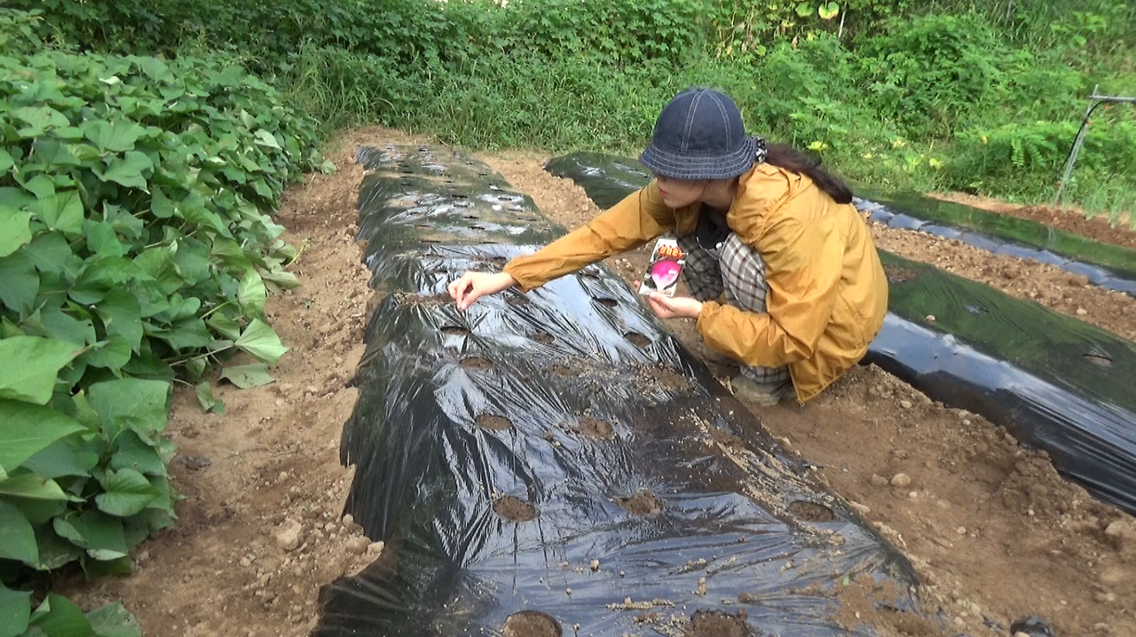 파종을 위해서는 비닐을 뚫어야 한다. 작물마다 적합한 거리를 두어야 하는데 밭의 크기에 따라 개수를 정해 뚫어주면 좋다. 무와 순무 보통 약 30cm 정도의 간격으로 심고 배추는 약 40cm 정도로 널찍하게 심어주면 좋다.