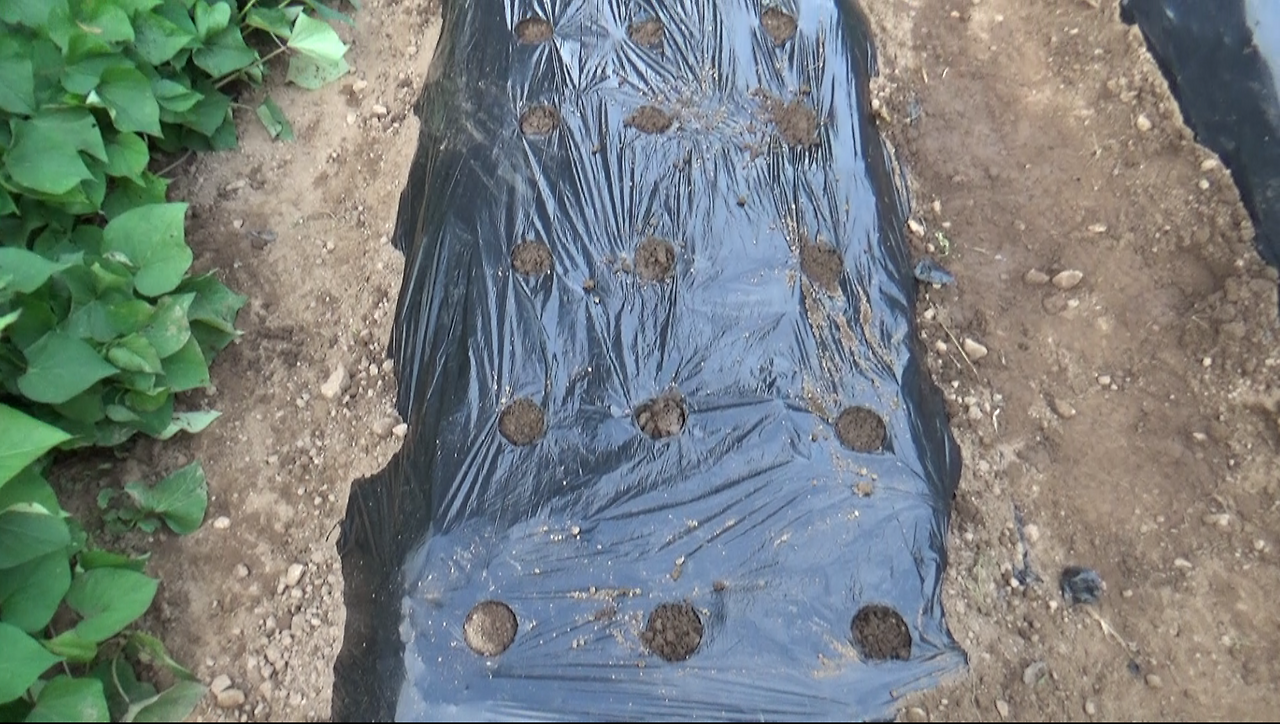 3. 멀칭에 적당한 구멍을 뚫고 파종, 모종 심기