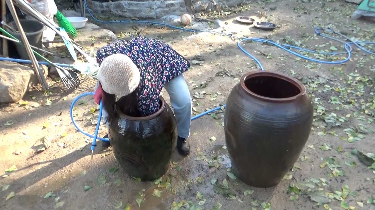 김장채소도 기르고 김장도 했으니 하는 김에 항아리도 묻어보기로 한다. 할아버지댁에 있던 쓰임이 멈춰진 항아리 중에서도 가장 멀쩡한 것들만 골라 깨끗이 닦아냈다. 숨을 쉬는 항아리라고 해서 퐁퐁과 같은 세재를 쓰지 않는 것이 좋다는 이야기를 들었다. 그래서 식초로 열심히 닦아냈다. 긴 세월 잠자던 항아리를 다시 깨우는데 이 정도는 할만한 일이었다.