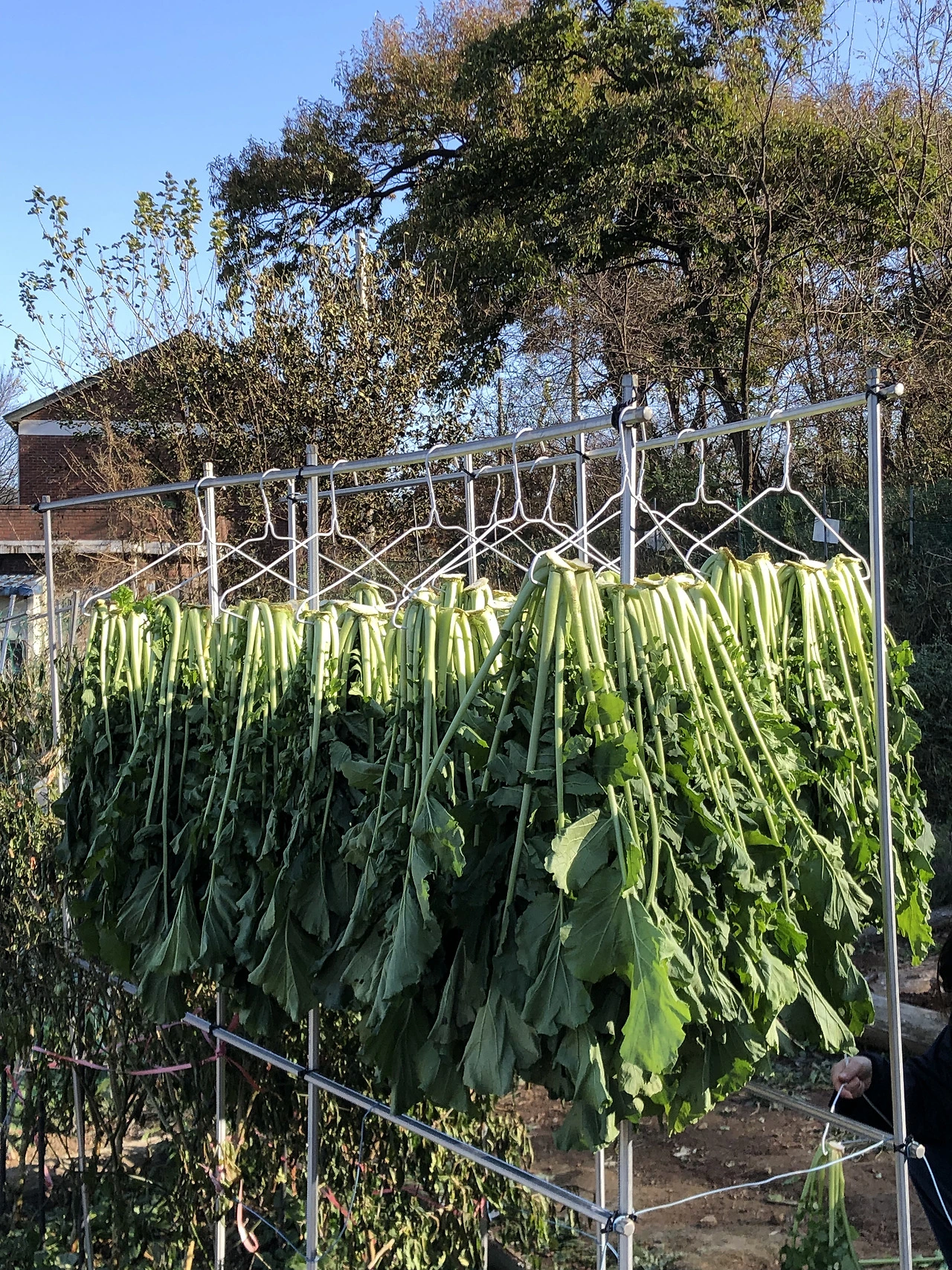 무청을 잘 말리기 위한 방법들을 찾다 보니 기발한 아이디어들이 돋보이는 방법들이 있었다. 그중에서도 선택한 방법은 옷걸이를 활용한 것이었다. 집에 널린 게 옷걸이고 무언가를 거는 것이 전문인 도구이니 이만한 게 없다.