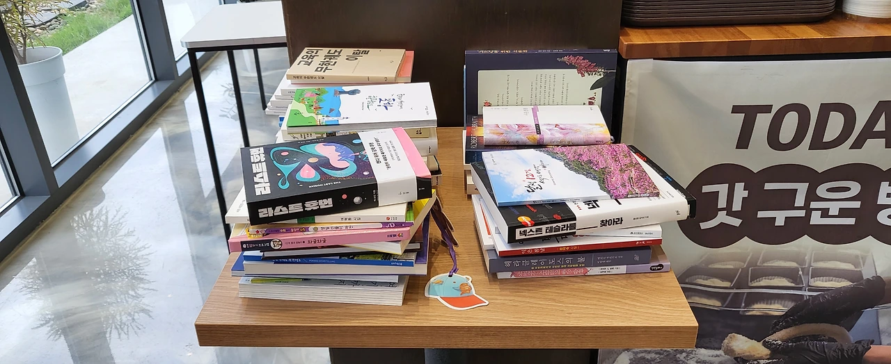 카페에 더 머물러 주기 원해서 책을 구비해 두셨다는 느낌을 받아서일까?