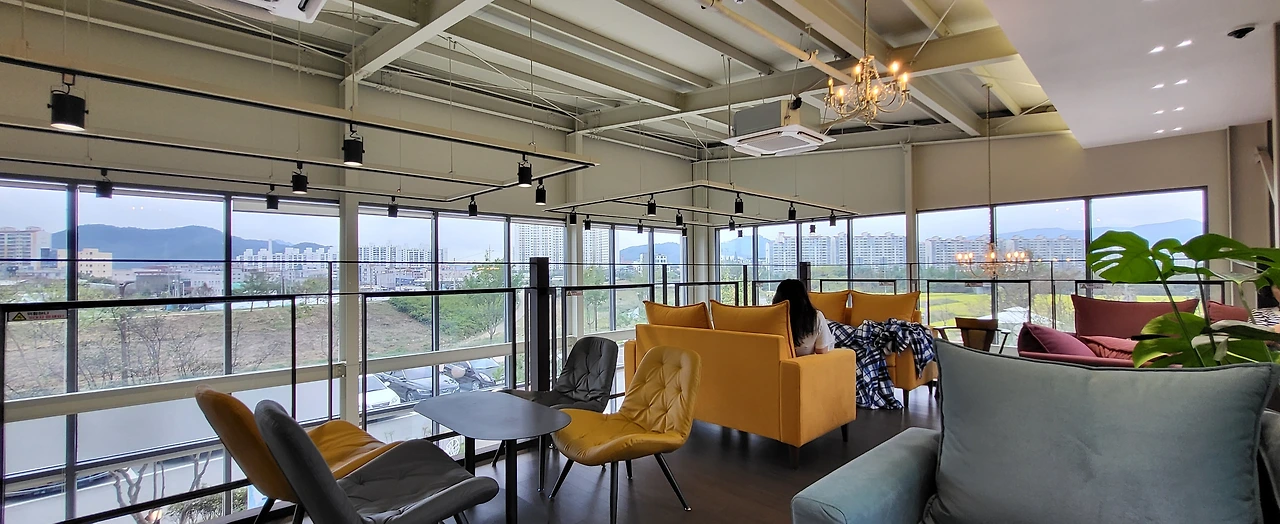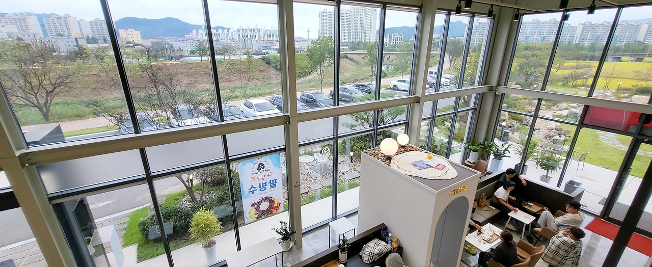 소파도 넓고 통유리의 상상력이 백만 프로가 되어 글을 조금 쓰다가 왔는데 2층 입구에서 좌측을 보면 컴퓨터나 공부를 하기 좋은 좌석들이 있던데 이미 사람들이 자리를 잡고 있어 일반 소파에 와서 글을 적었는데 테이블이 낮아서 조금 불편한 감이 있었다.