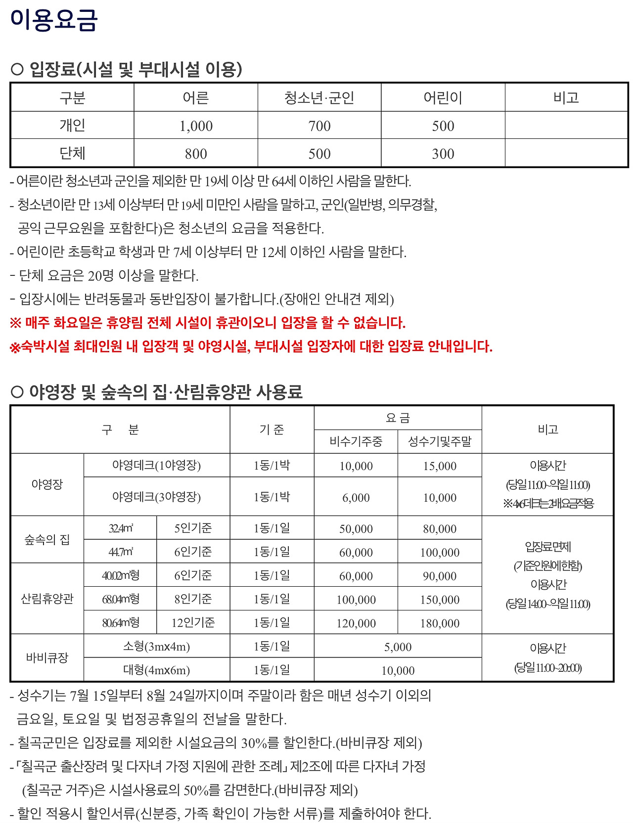 - 입실 시 군민, 다자녀 증명 후 후할인 진행(예약 시 전액 지불 입실 시 확인 후 할인)