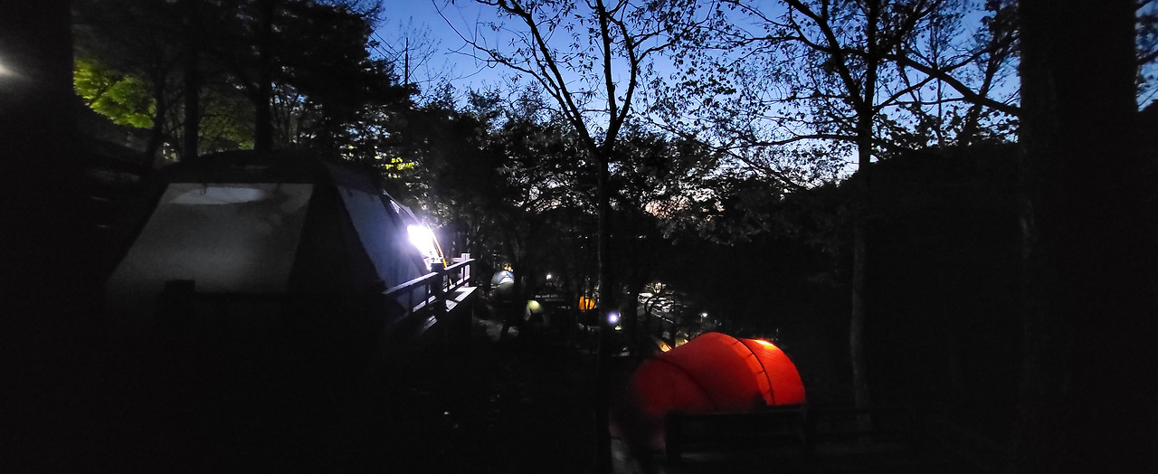 숙소 예약했을 때에는 1 야영장은 거의 전문 캠퍼들의 성지 수준이었다 장비도 좋았고 큰 텐트들의 비중이 컸으며 하루 정도 머물 것으로는 보이지 않았다.