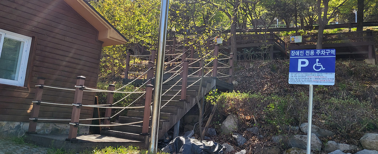 3야영장의 경우 18번부터 26번 까지는 산림휴양지 방향에서 짐을 내리는 게 편하고 퇴실 시에 계단을 오르기가 어렵다고 하면 웨건을 이용해 아래쪽으로 짐을 옮긴 후 내리는 것이 편하다 위쪽은 도로가에 주차를 하면 수월하고 아래쪽은 2주차장에 주차를 하는 것이 좋다.