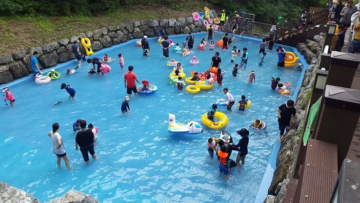 송정자연휴양림의 또 다른 매력은 바로 수영장이지 않을까 한다. 숙소나 야영이 아니더라도 수영장을 위해 많은 이들이 찾아오기도 한다.