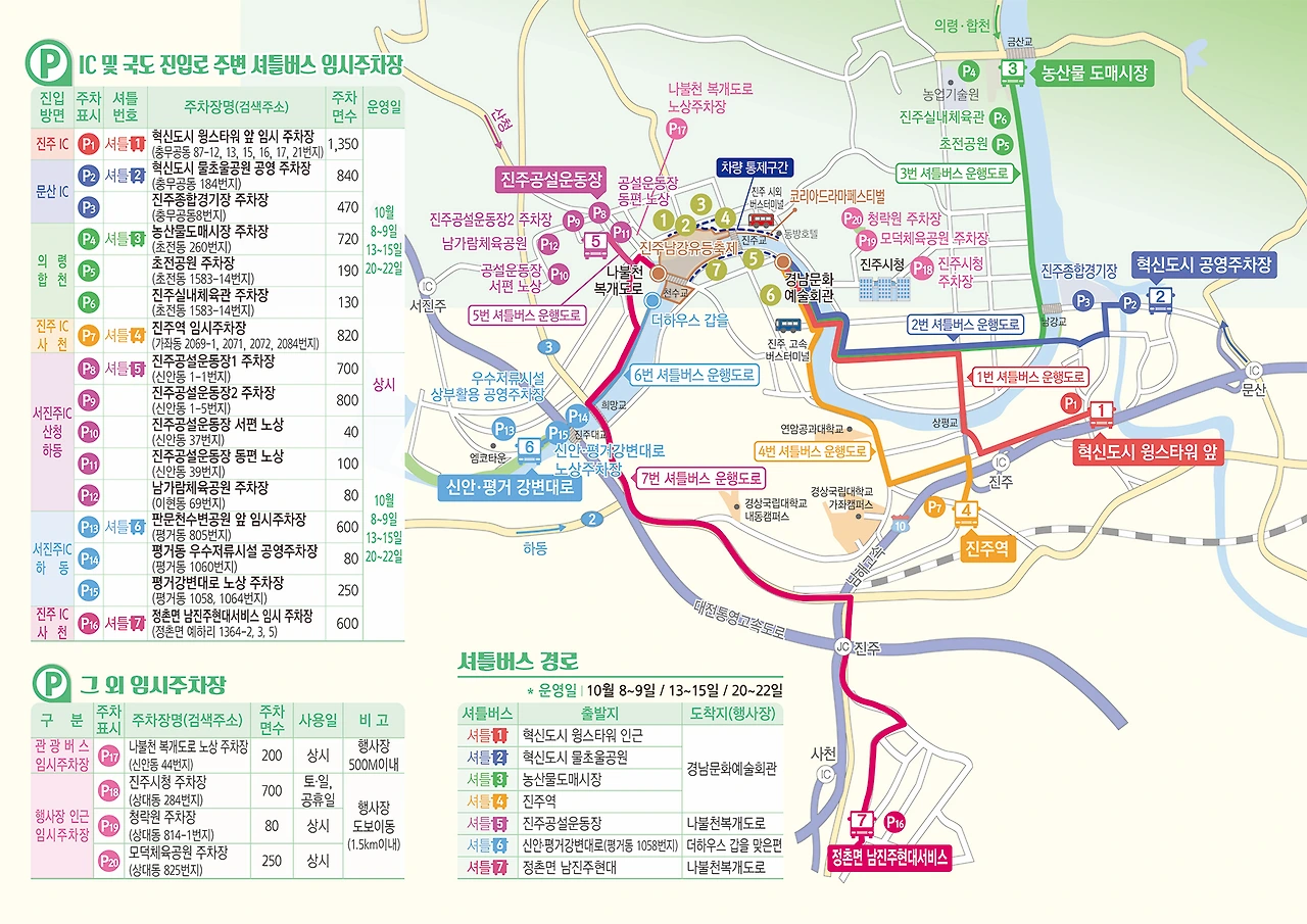 친오빠는 통영에서 나는 칠곡에서 출발하는 것이기에 주차장을 미리 알고 출발하는 것이 좋을 듯하여 임시주차장과 셔틀버스에 대한 정보를 미리 올려본다. 주 행사가 오후 6시부터 진행을 하니 미리 서둘러서 주차를 하는 게 좋을 듯하다 지방 행사이지만 많은 사람들이 방문하는 행사이니 만큼 인파가 몰릴 확률이 높다.
