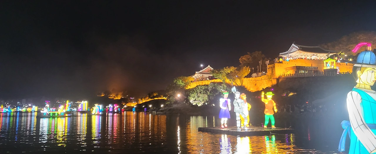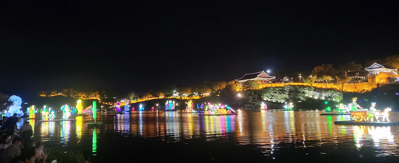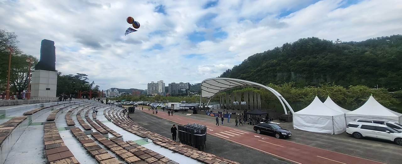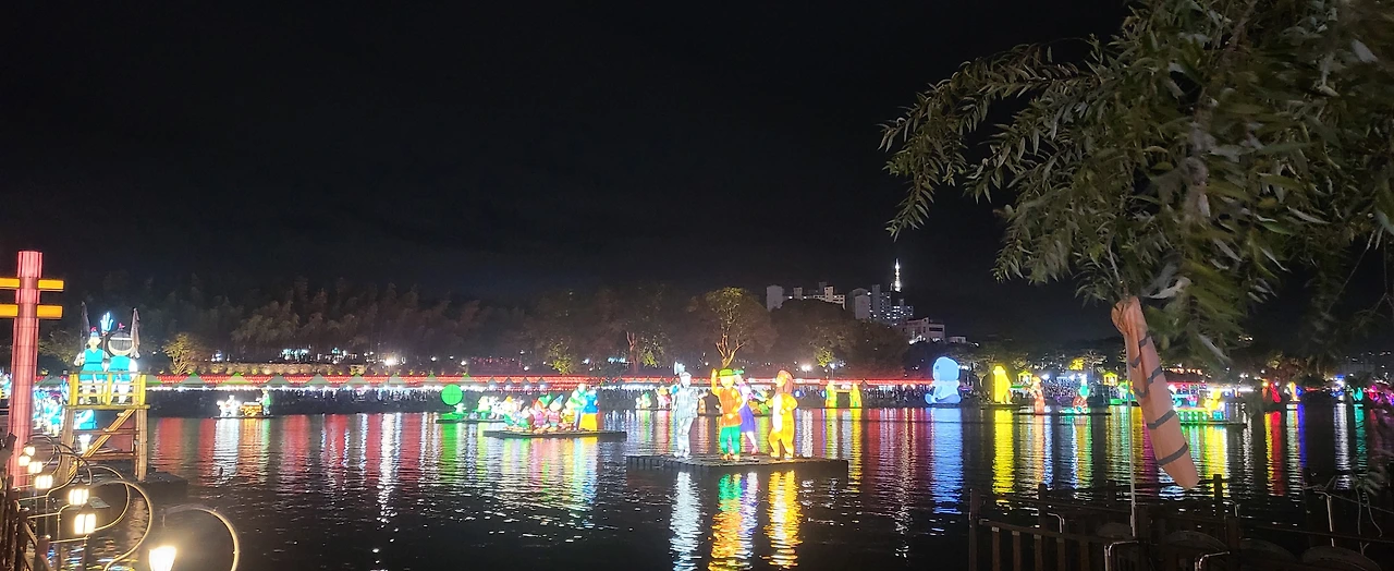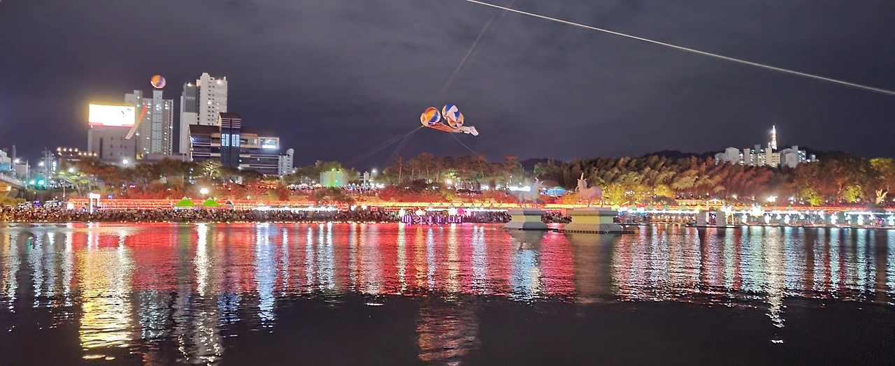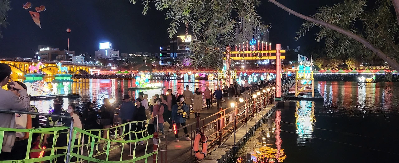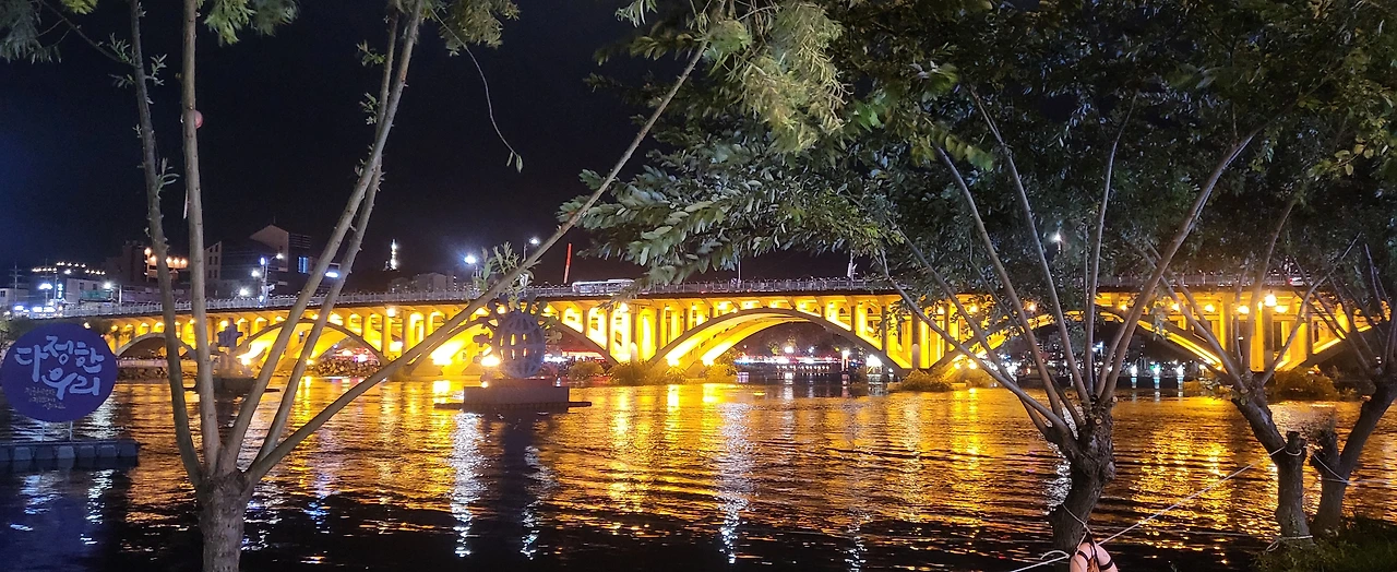 불꽃놀이 영상이나 사진이 없는 이유가 그 이유인데.. 천수교에서 진주교 사이에서 한다해서 강에서 터트리는 줄 알았는데..(심지어 119 소방차 들도 불꽃놀이 시간이 되니 반대편에서 많이 다니길래..) 불꽃놀이는 배다리 옆 촉석문이랑 주제존 사이에서 했는데 절반이 넘는 폭죽이 낮게 터지는 종류라 나무에 가려져 찍기도 힘들고 잘 보이지도 않았다.