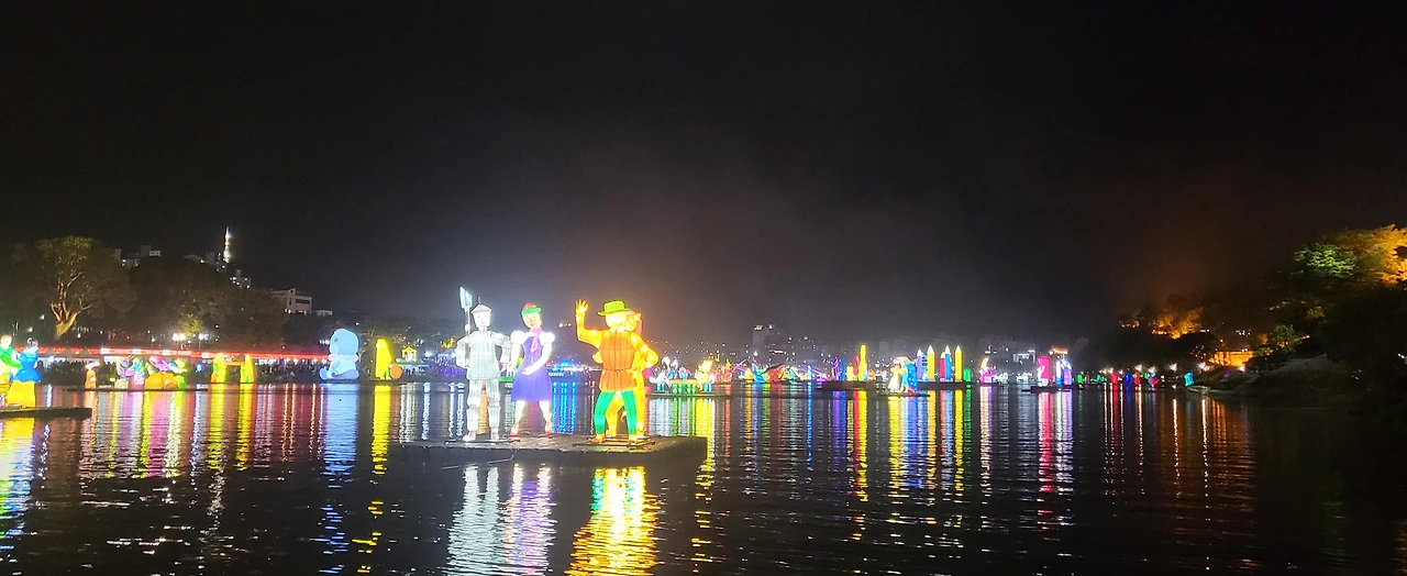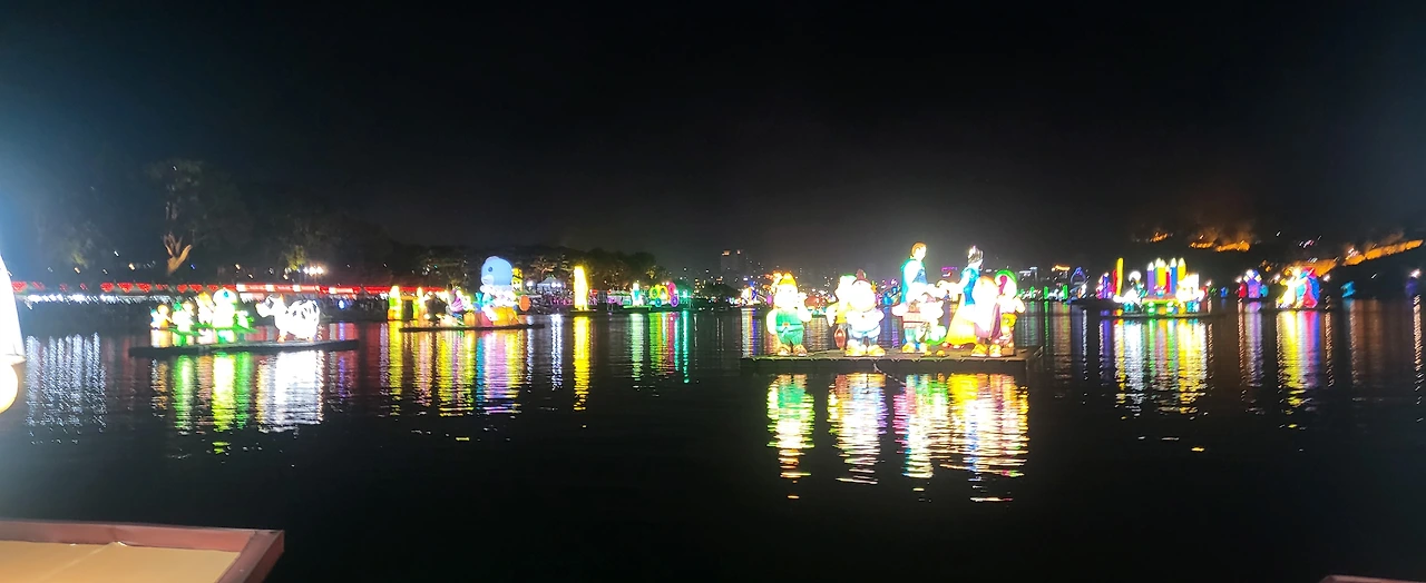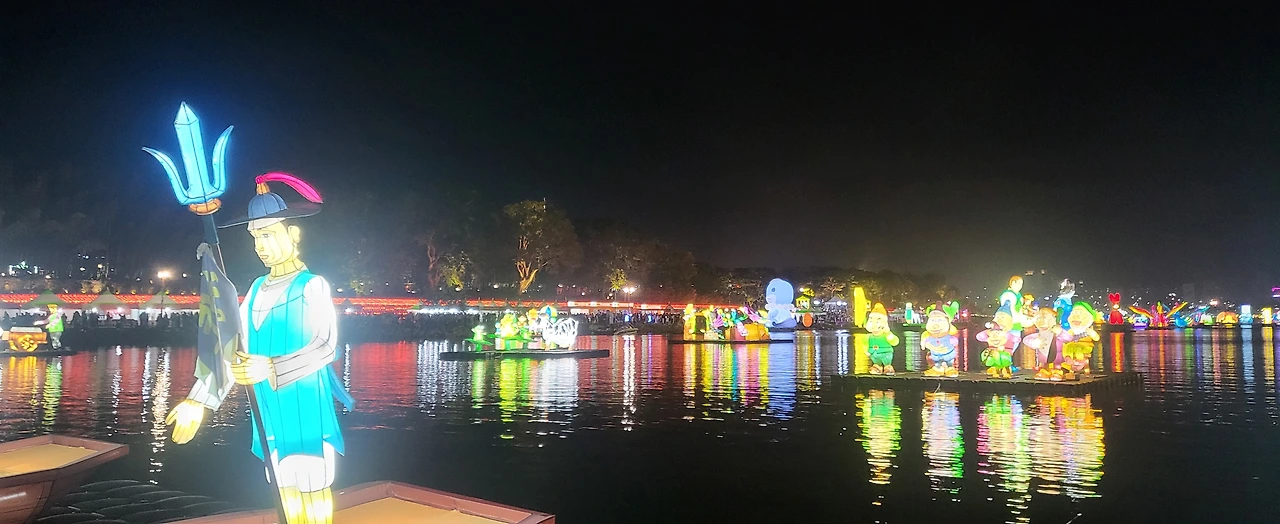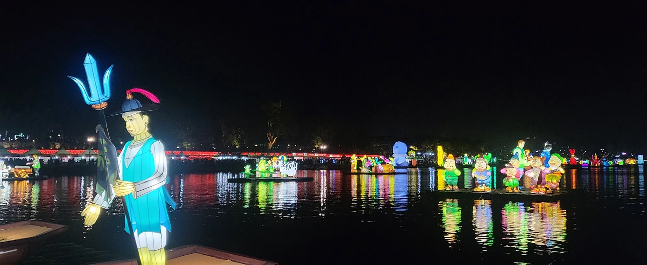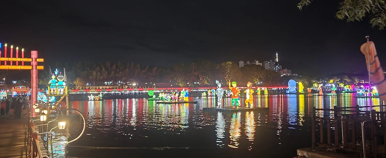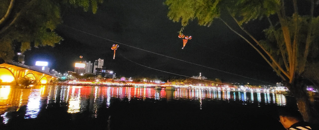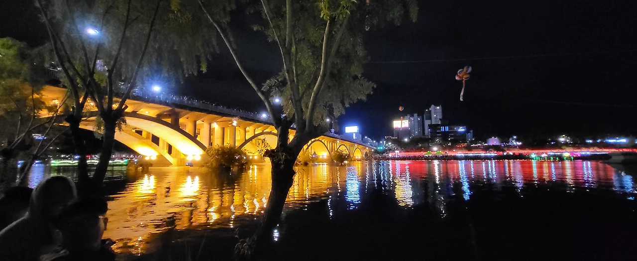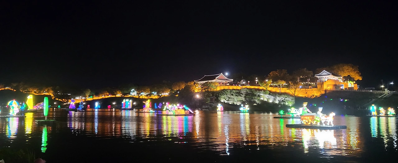 불꽃놀이 영상이나 사진이 없는 이유가 그 이유인데.. 천수교에서 진주교 사이에서 한다해서 강에서 터트리는 줄 알았는데..(심지어 119 소방차 들도 불꽃놀이 시간이 되니 반대편에서 많이 다니길래..) 불꽃놀이는 배다리 옆 촉석문이랑 주제존 사이에서 했는데 절반이 넘는 폭죽이 낮게 터지는 종류라 나무에 가려져 찍기도 힘들고 잘 보이지도 않았다.