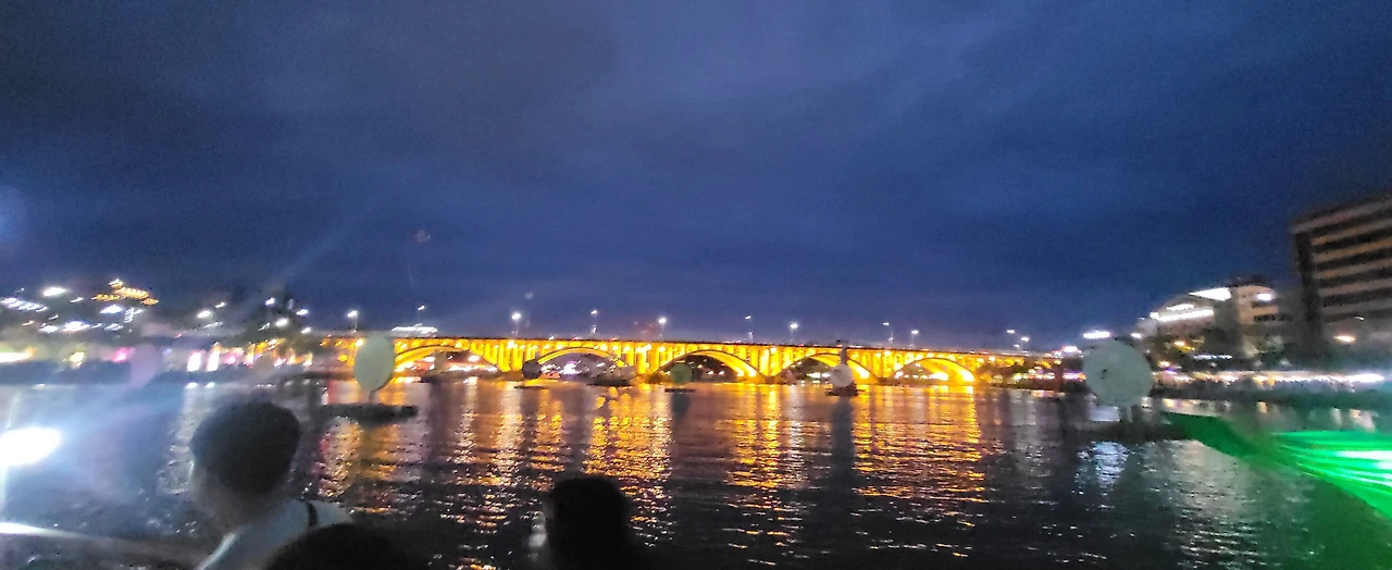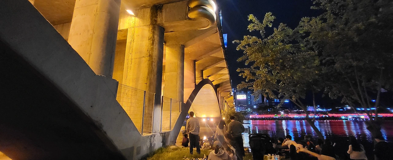 야시장에서 시간을 많이 보내서 일까? 8시에 개막식 불꽃축제를 해서 미리 진주교를 지나왔는데 이미 많은 사람들이 자리를 잡고 앉아있었다.