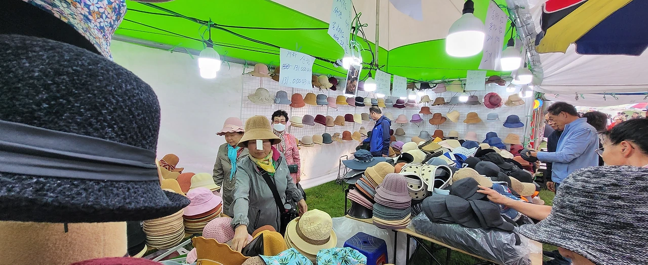 모자도 5,000원! 엄마께 여러개 씌워드리고 마음에 드는 걸로 2개 골랐다.