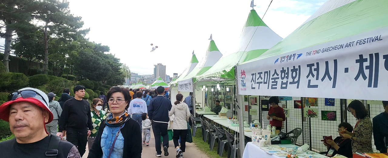 1시쯤 출발해서 3시에 도착했음에도 개막식 당일이라 그런지 많은 사람들이 이미 주차를해서 주차장을 찾기 쉽지 않았다. 진주성이랑 문화예술회관을 두어바퀴 돌았음에도 주차장이라 안내 하는 곳은 없는 걸 보아하니 주변에 눈치껏 주차하고 걸어오거나 안내책자에 기재된 곳에 주차를 하고 셔틀버스를 타는게 나을 듯 하다.