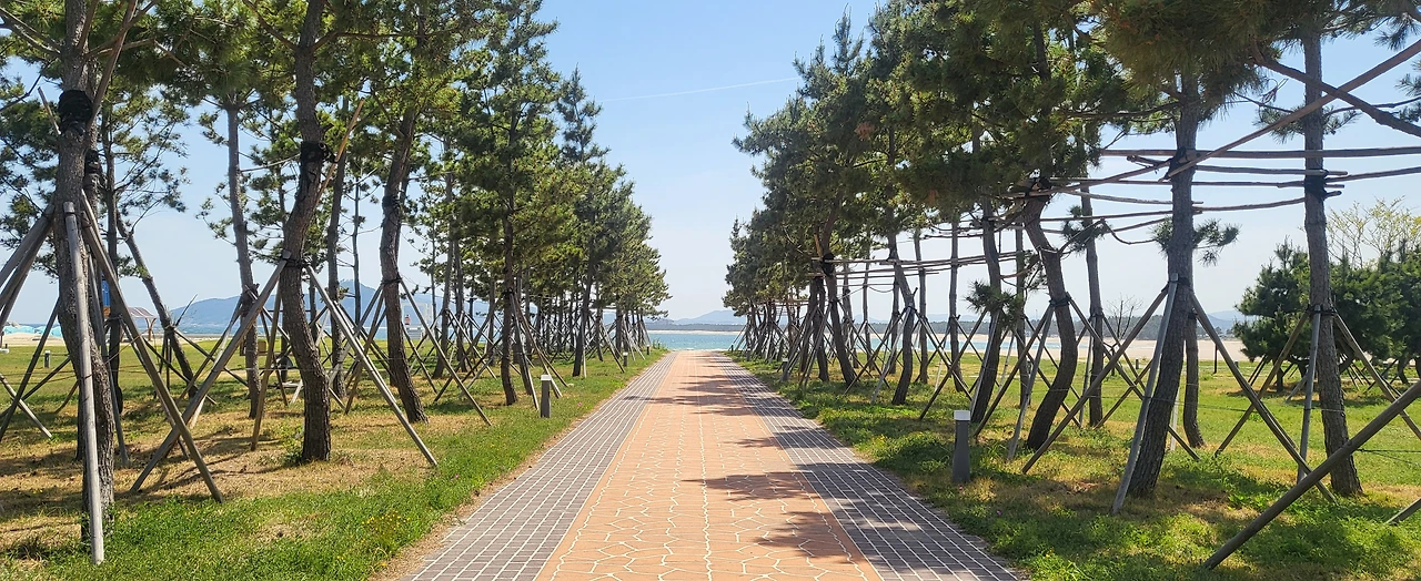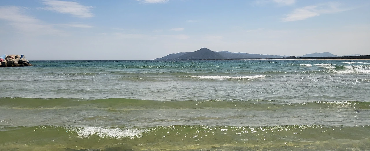 백사장의 길이가 8km나 되는 넓고 길며 경사는 3도 정도로 완만하여 이동하는 것에 큰 부담이 없어 산책하기 편하고 좋았다.