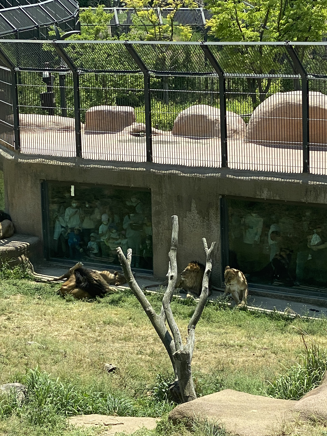 그곳에 앉아 있으니, 건너편 통유리에 다닥다닥 붙어서 사자를 구경하는 많은 인파가 갇혀있는 듯 보였다.