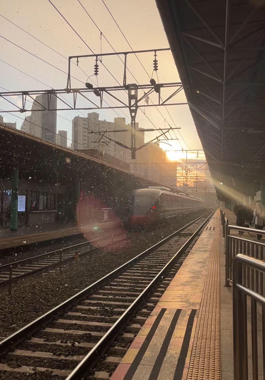 횡단보도에서 신호를 기다리며 읊조린 것이 나의 하루의 오프닝 시퀀스가 될 줄은 몰랐다. 비교적 간단한 촬영이었지만 장소가 기차 안이어야 해서 기차를 탔다. 종착지가 어딘지 모르는 반가운 무궁화 호를 타고선 멍하게 창밖을 바라보는데, ‘떠나고 있다.’라는 생각이 떠올랐다. 언제 움직여야 할지, 어디로 가야 할지, 또 다큐이기 때문에 어떤 연기를 해야 할지도 정하지 않아도 됐다. 짧은 시간이었지만 갔다가 돌아오는 기차는 내 마음을 노릇하게 구웠다. 태양이 예쁜 각도로 기울어져 황금빛이 물드는 기차역에 펑펑 쏟아지는 눈이라니.