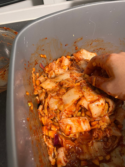 뭐라도 상관없이 조물 조물 버무리다 보니 어느새 김치는 완성되었다.