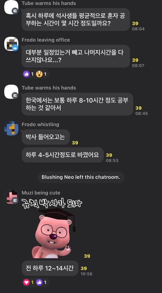 헉, 한동안 이 톡 방을 열지 않았었는데 다들 이러고 있었던 것인가?