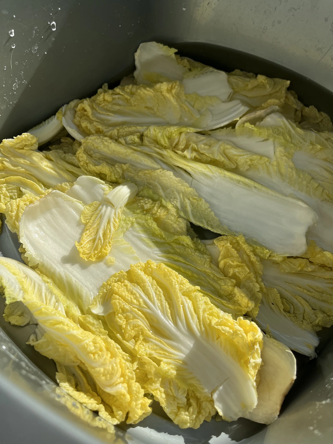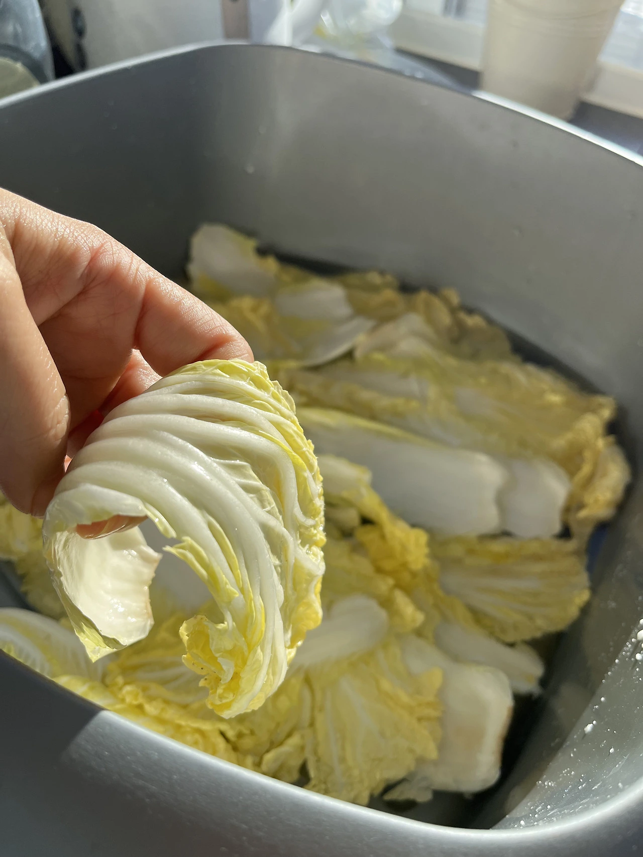 우선 배추를 잘 씻고, 소금을 뿌려 재워둔다.