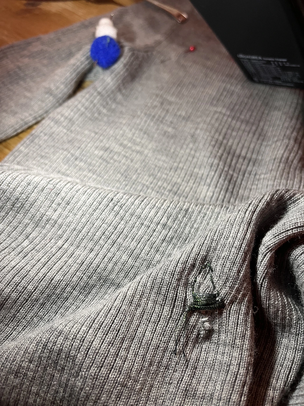 저번에 겨우겨우 구멍 하나를 메운 스웨터를 오늘도 들고 왔다. 학교에서 반짝이는 녹색 실을 구한 김에 반짝이는 트리를 스웨터에 수놓고 싶었다. 아이고... 실도 너무 얇고, 실내는 어두워서 잘 보이지도 않고, 신축성이 엄청난 스웨터는 내가 열불이 나서 잡아당길 때마다 이쪽저쪽 울고 있었다. 울지 말라고!!! 네가 나냐고! (?)