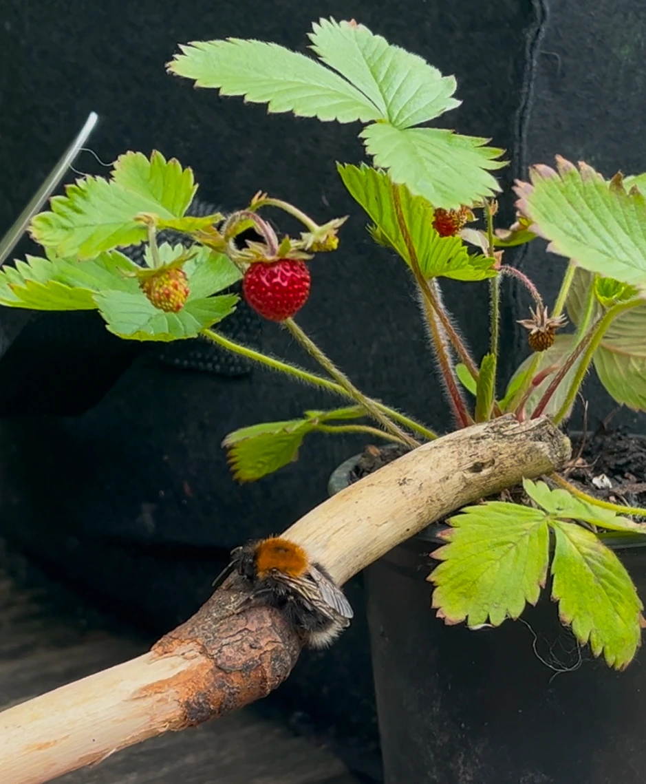 아, 기력이 없어서 힘이 빠졌구나. 그렇다면 설탕물 조치가 필요할 시점이다. 나는 오이가 들어있던 작은 봉투를 비우고 호박벌을 담았다.