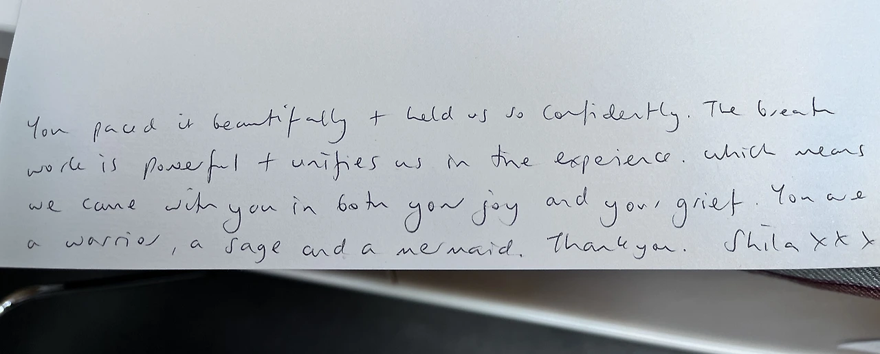 The breath work is powerful + unifies us in the experience.