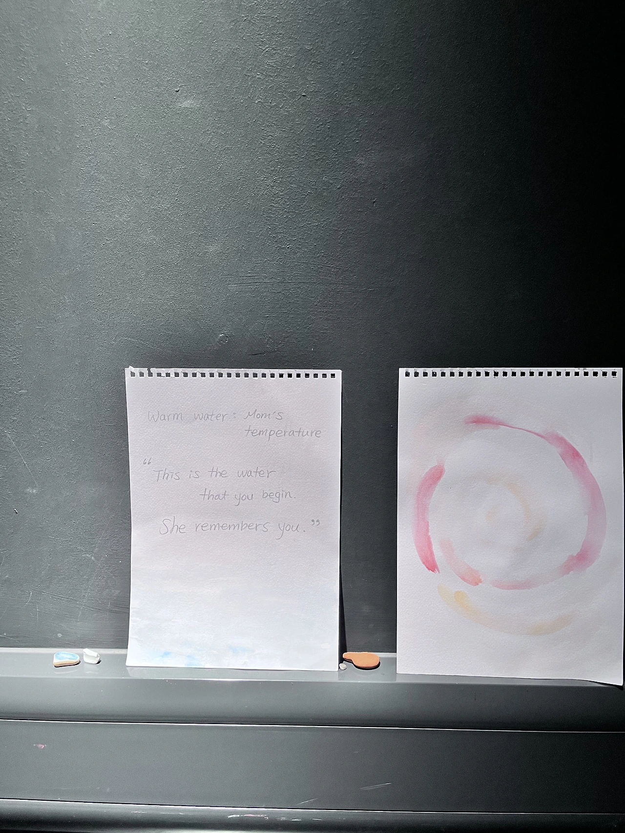 관객들은 자리를 떠나지 않고 오랫동안 로비에 앉아 바다에 대한 추억을 나누며 상념에 촉촉이 젖었다. 어떤 관객은 어릴 때의 기억 때문에 물을 무서워한다고 했는데. - 그리고 사실 이 부분이 전시+공연을 준비하며 가장 고민한 부분이기도 하다. 물에 대한 트라우마나 공포가 있는 사람들이 공간을 무섭게 느낄까 봐.