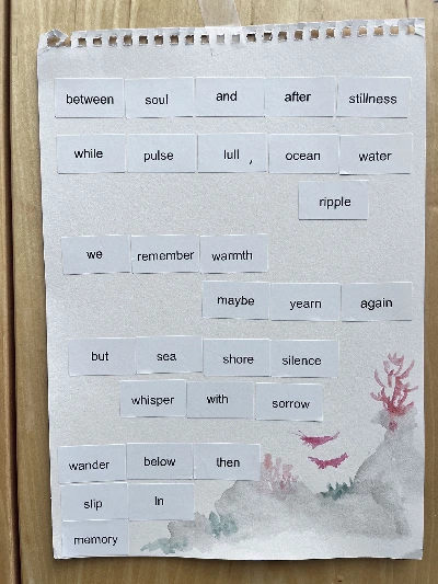 공연이 끝나고 피드백을 받았다. 느낀 점을 내가 기존에 준비한 65개의 단어에서 골라 시로 적어내는 다소 창의적인 방식을 차용해 보았다.