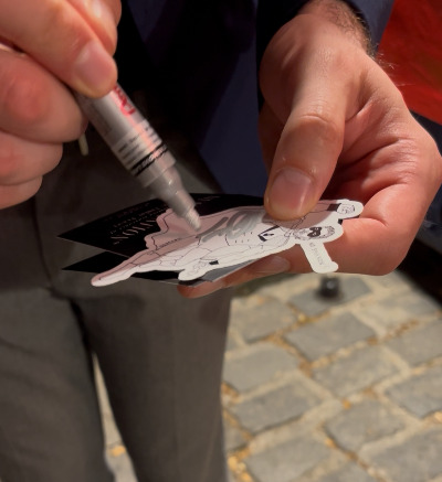 향수라니 독특한 걸? 시향해 보니 향이 나쁘지 않다. 조금 우디 하기도 하면서, 어딘가 바닐라 향도 나면서... 꼭 배우의 이미지와 맞아떨어지는 이 향이 퍽 마음에 들었다. 남자 향수 같긴 하지만 오늘의 마지막 공연 아니 에든버러에서의 마지막 공연을 기념할 겸, 한밤 중에 저렇게나 열연한 배우를 응원할 겸, 나쁘지 않은 구매인 듯하여 미니 사이즈(시향 하는 사이즈 정도인데 8파운드나 한다, 헉!) 향수와 마지막 한 장 남은 스티커를 샀다. 사인까지 받을 생각은 아니었는데 스태프가 자꾸 사인을 받으라고 부추겨서 사인도 받았다.
