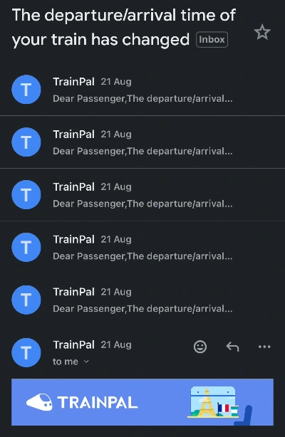 거의 경보에 가깝게 발을 굴러 일곱 시를 10분 정도 남기고 기차역에 가까워져 가는데 메일이 띠링하고 울린다.