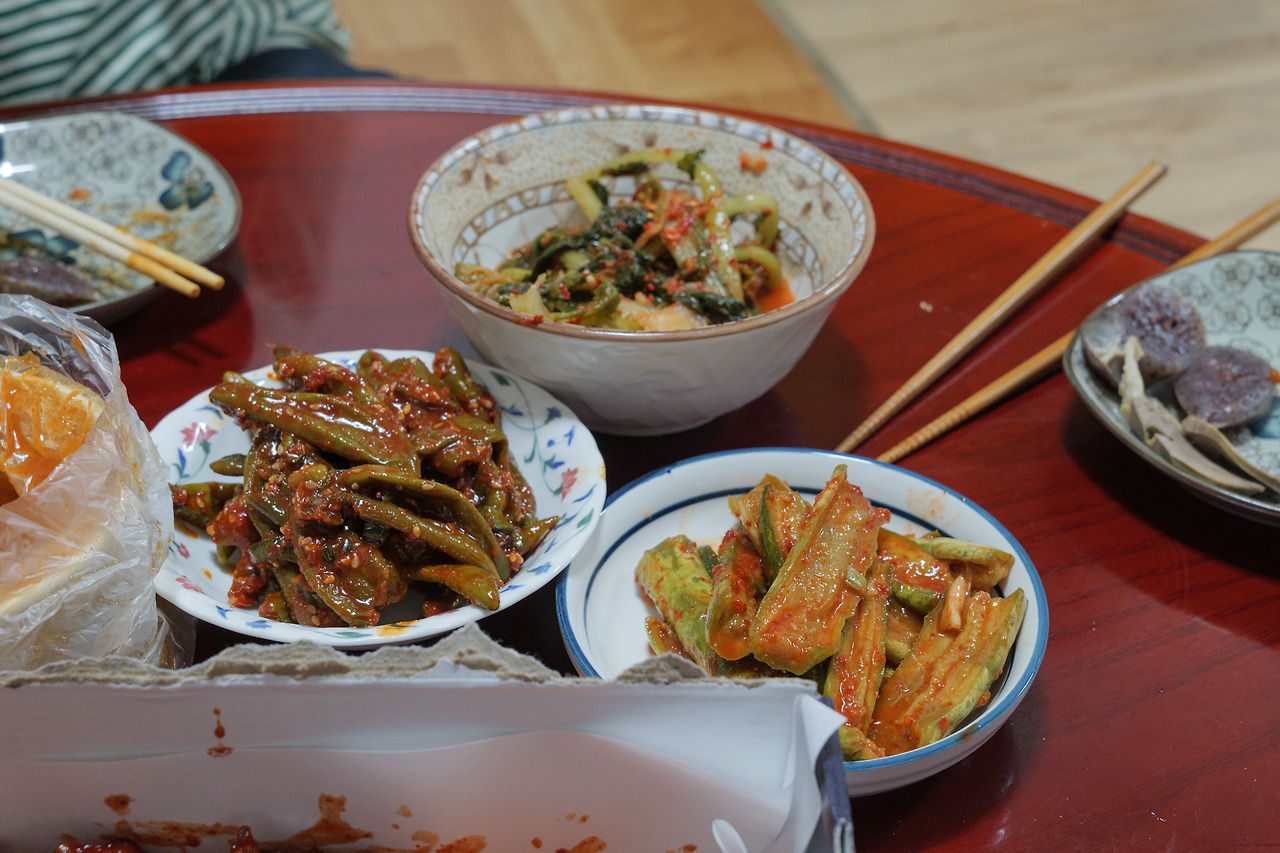 한사코 우리의 접시에 닭강정을 덜어 주시며 먼저 먹으라 부추기시는 어르신들의 너스레 덕에 긴장이 한소끔 풀어진다. 한참을 맛있네, 바삭하네, 쫀득하네 하면서 품평회가 열린 뒤 아무래도 다소 기름진 음식이다 보니 김치가 당기셨는지 집주인인 박봉여 할머니께서 열무김치를 꺼내오신다. 오랜 시간을 함께 하면서 인사치레의 필요도 흐려져 버렸는지 “그래, 다른 김치도 있으면 좀 가져와”라고 속 시원히말 하는 할머니의 친구분들이 좋았다.