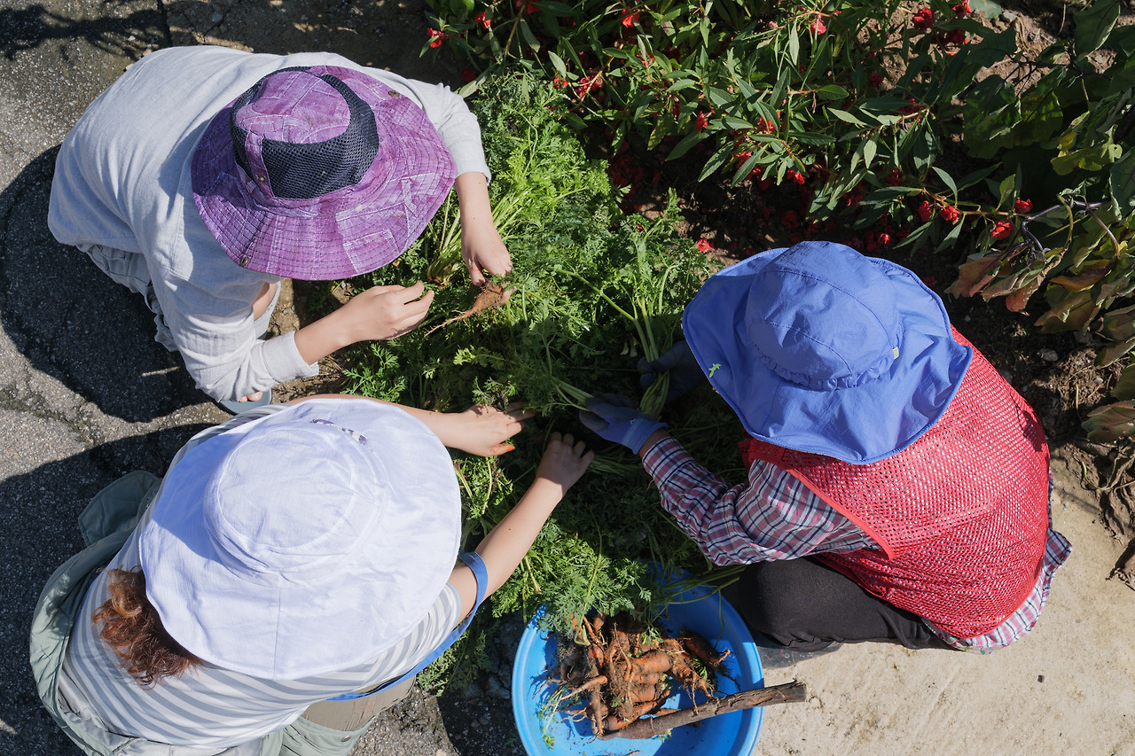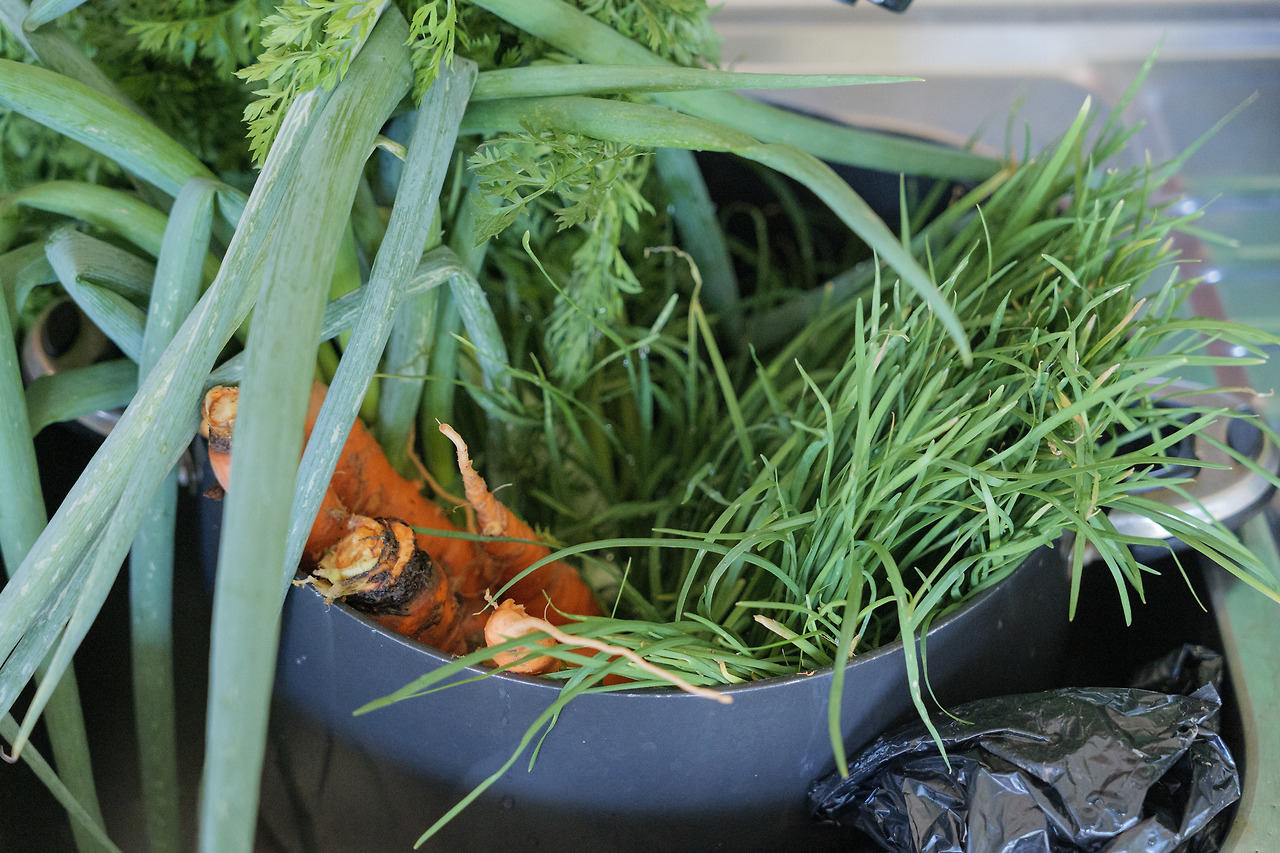 어디선가 향긋한 흙내음이 나서 킁킁거리며 따라가 보니 당근을 솎고 계신 어머님이 계시다. 정 작가와 앉아서 당근을 뽑으며 일손을 조금 도왔다. 흙을 툭툭 털고 쌓아둔 당근 바구니 옆, 천대받으며 쌓여있는 싱싱한 당근청을 보고 있으려니 영국에 있을 때 이 당근청으로 페스토를 만들었던 기억이 문득 스쳤다.