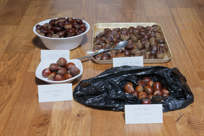 앞 집, 옆 동, 다른 민박, 그리고 작가님과 교회 집사님들에 이르기까지 수많은 밤들이 나에게 기증(?)되었다. 바야흐로 가을이라 그런가 사방에서 밤 타작 하는 소리들이 들린다 했더니… 평생 먹을 밤을 다 받은 듯, 흡사 마르지 않는 샘이었다. 하루를 꼬박 삶아내고 속을 모두 파내고 나면, 와아! 다음날 또 오병이어의 기적처럼 포대자루가 채워졌다.