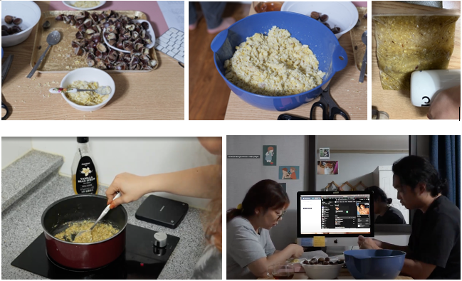나는 물과 알룰로오스 시럽, 밤을 파낸 다이스를 섞어 밤 라테 시럽을 만들면서 오늘 내가 생각하고 느낀 바를 류 작가와 공유했다.