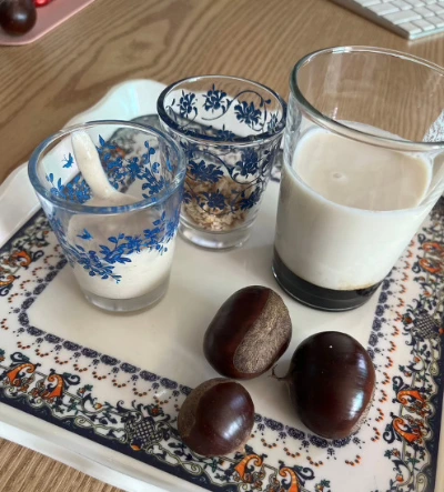 저녁에 서울로 가야 하는 일정이 있어 아침부터 분주하게 철쭉 할머니께 가져갈 밤 우유를 만들었다. 이 프로젝트의 공식적인 첫 보은이 될 터라 마음이 들뜨기도, 과연 우리의 입맛으로 만든 밤 우유를 좋아해 주실까 우려도 된다. 귀여운 쟁반에 할머니께서 주신 밤과 강냉이, 밤 크림, 밤 우유를 담고 류 작가와 함께 할머니 댁으로 출발했다. 점심식사를 함께 먹고 “할머니, 할머니가 주신 이 밤으로 라테를 만들었어요.”라고 내밀어야지.