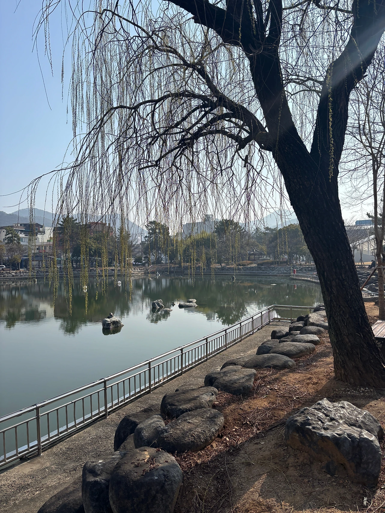 숙소 앞에는 거북이가 있는 호수공원이 있었다.