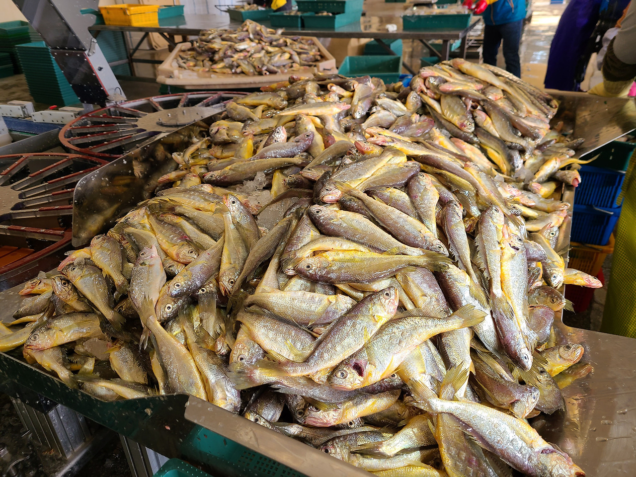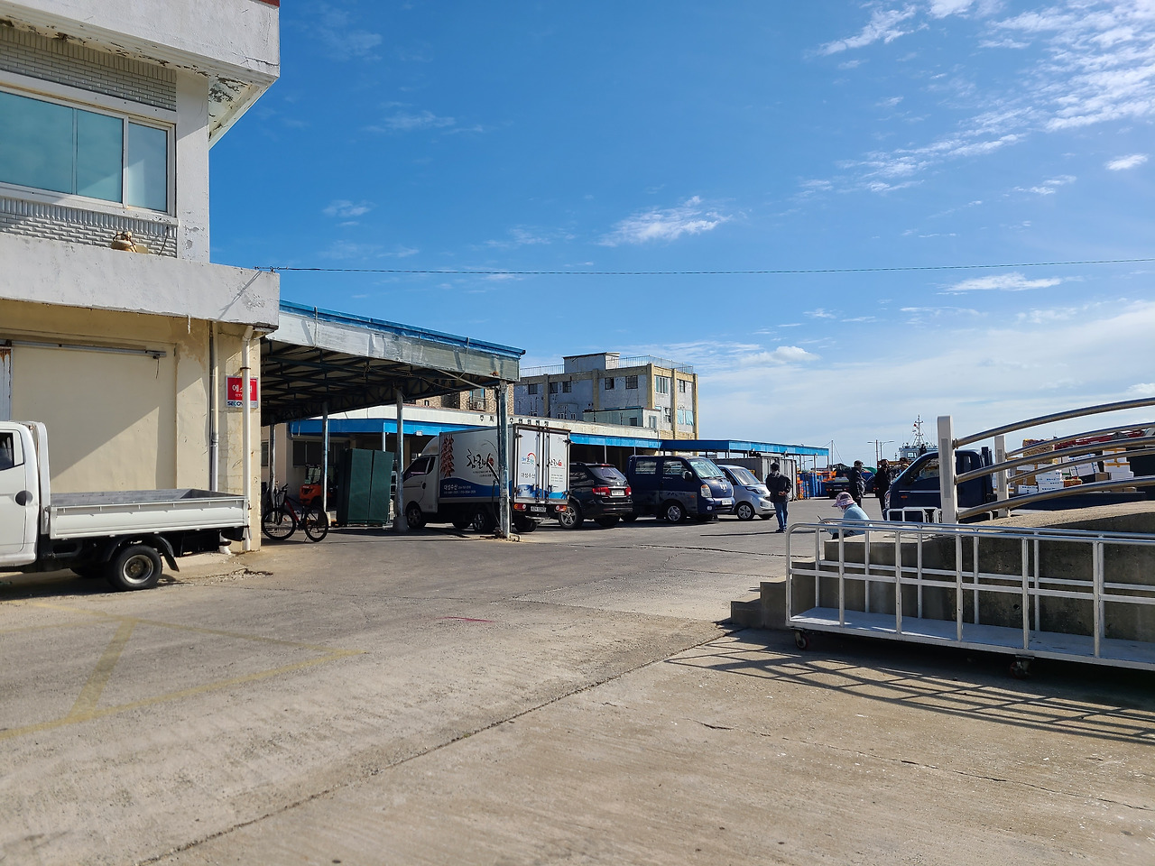 섬에 입도했던 첫날의 기분으로 승선을 기다리는 여객터미널 옆 수협 위판장. 바다를 떠나온 금빛 조기 누군가의 식탁으로 가기 위해 선별작업을 기다리고 있습니다. 내가 집으로 가지 위해 배를 기다리는 것처럼.