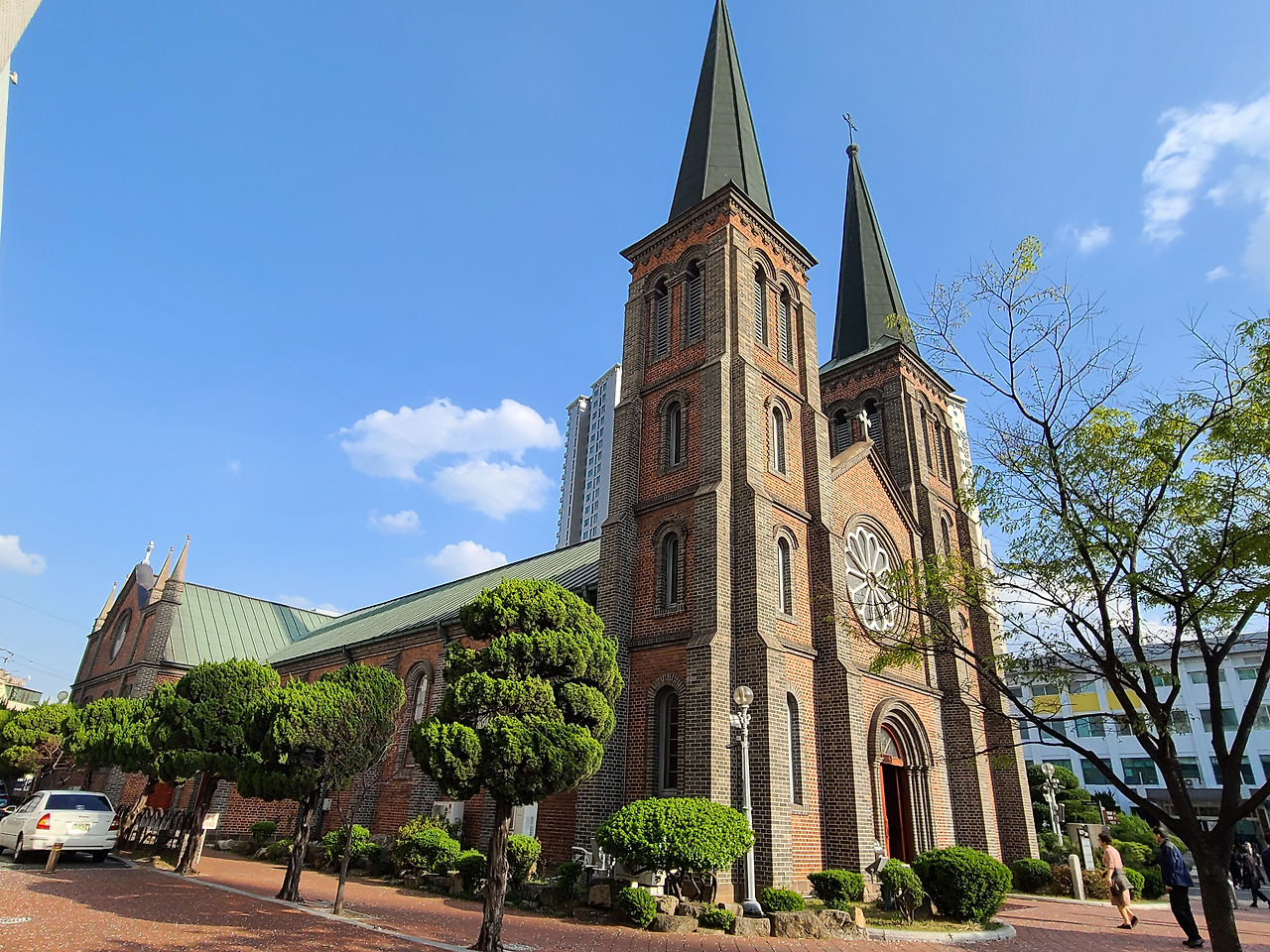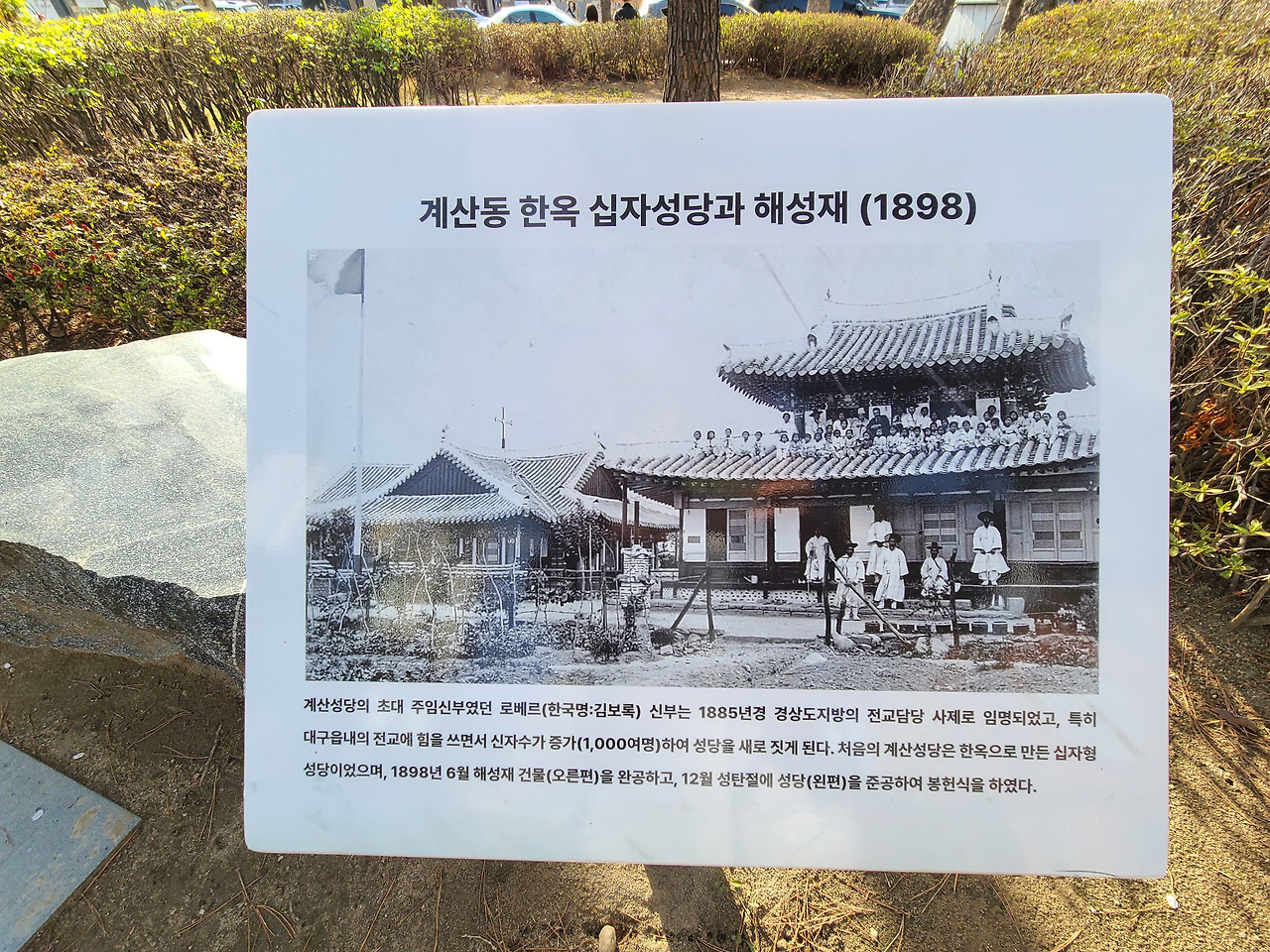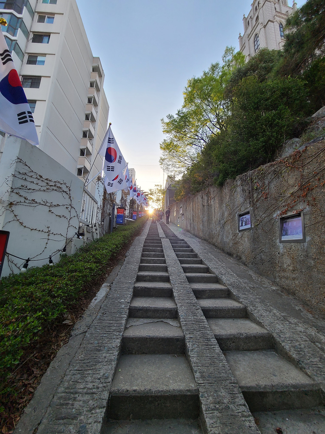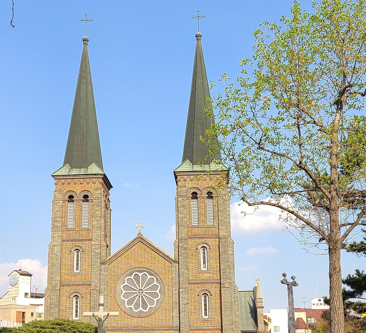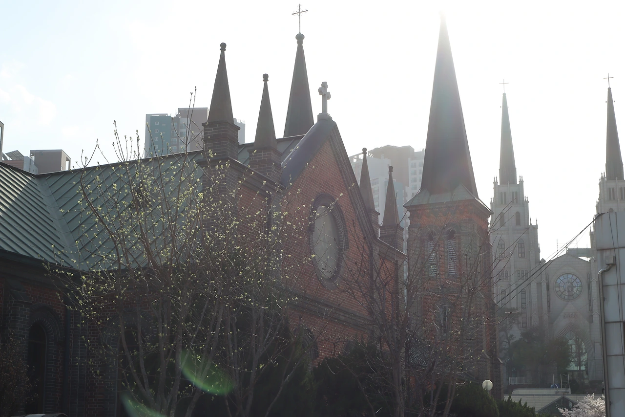 담벼락 담쟁이 줄기 밀착하고 수만 개의 잎을 이끌고 갈 날 기다리듯, 내일을 향해 가는 나는 3.1 만세 운동길 계단 타박타박 내려온다. 대구 최초 서양식 건물로 고딕양식이 가미된 로마네스크 양식의 계산 성당 종탑이 주는 위엄에 미묘한 감정이 서성이게 한다.