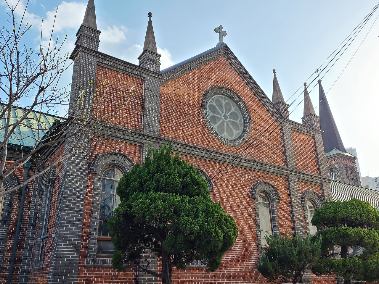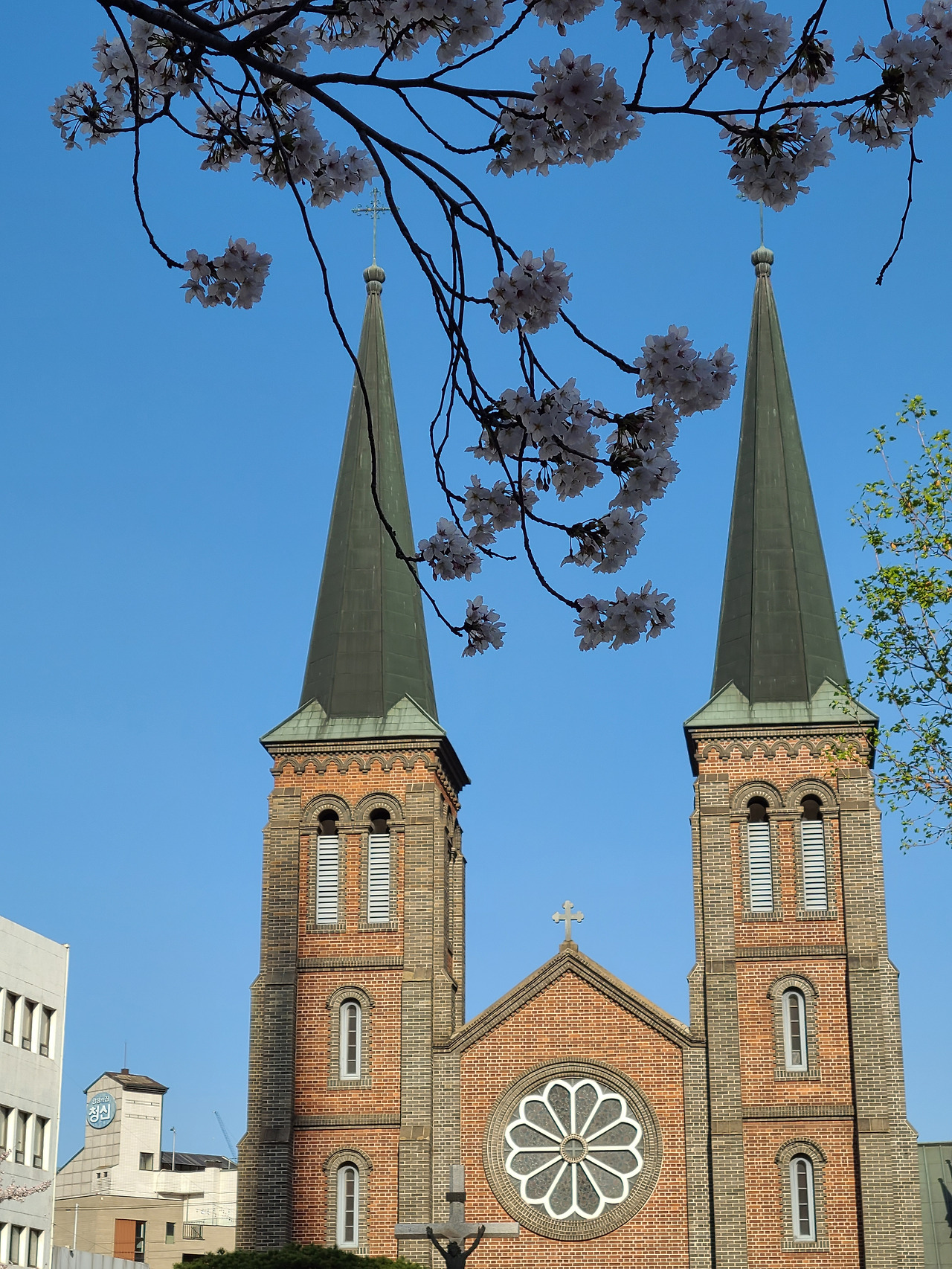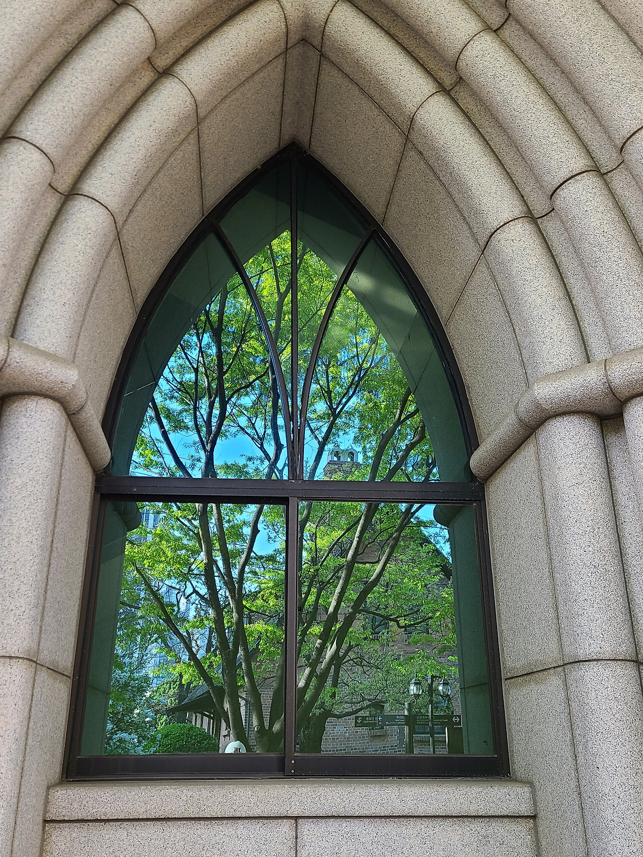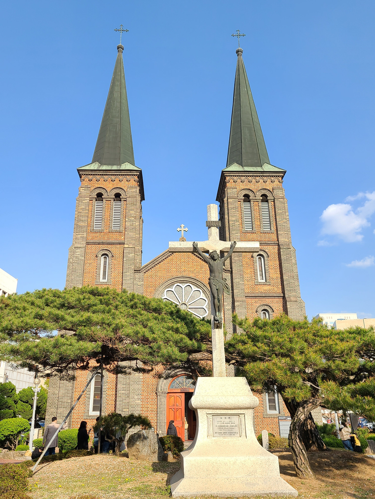 담벼락 담쟁이 줄기 밀착하고 수만 개의 잎을 이끌고 갈 날 기다리듯, 내일을 향해 가는 나는 3.1 만세 운동길 계단 타박타박 내려온다. 대구 최초 서양식 건물로 고딕양식이 가미된 로마네스크 양식의 계산 성당 종탑이 주는 위엄에 미묘한 감정이 서성이게 한다.