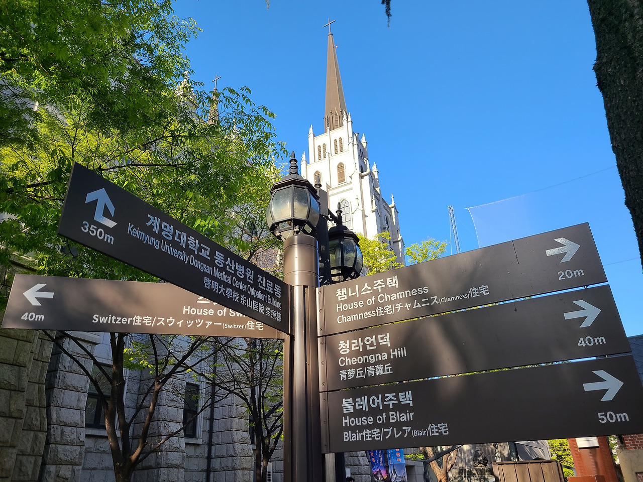 동산의료원 100주년을 기념해 세운 100주년 기념 종탑과 대구 능금의 효시 3 세목 역사를 읽다가 구스타프 클림트의 작품 ‘사과나무’를 모작하던 지난 시간과 만난다. c-19로 움츠렸던 나에게 다른 환경을 제공하고 싶어 느닷없이 나선 길에서 선교사 스윗즈 주택, 챔니스 주택, 블레어 주택은 새로움이다.