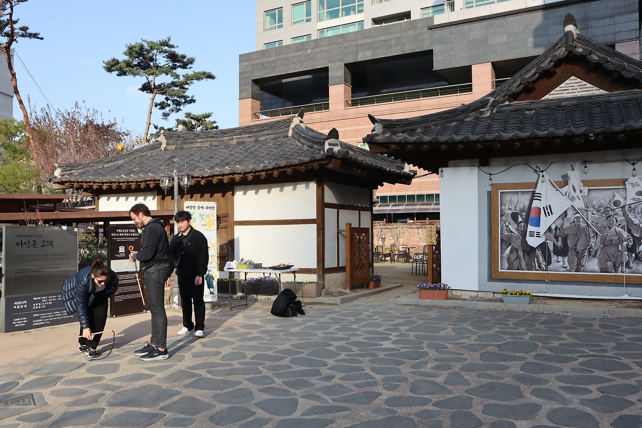일본에 국권을 찾고자 대구 광문사 사장인 김광제와 함께 금연으로 나라의 빚을 갚자는 국채보상운동을 벌인 독립운동가 서상돈의 고택 입구 외국인 친구들 전통놀이 중이다. 팽이가 잘 돌지 않는지 무한 반복하는 모습을 바라보면서 팽이채로 때려야만 돌아가는 팽이의 통증이 왠지 나를 닮은 것 같아 돌아선다.