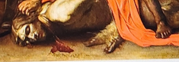 어쩜 처음이자 마지막인 카라바조의 본명이자 피로 쓴 서명을 더 자세히 보고 싶었는지도 모른다. 카라바조 본명은 '미켈란젤로 메리시'이다. 그러나 다른 미켈란젤로가 너무 유명하여 부모님의 고향인 '카라바조'라는 이명을 사용하였다고 한다.