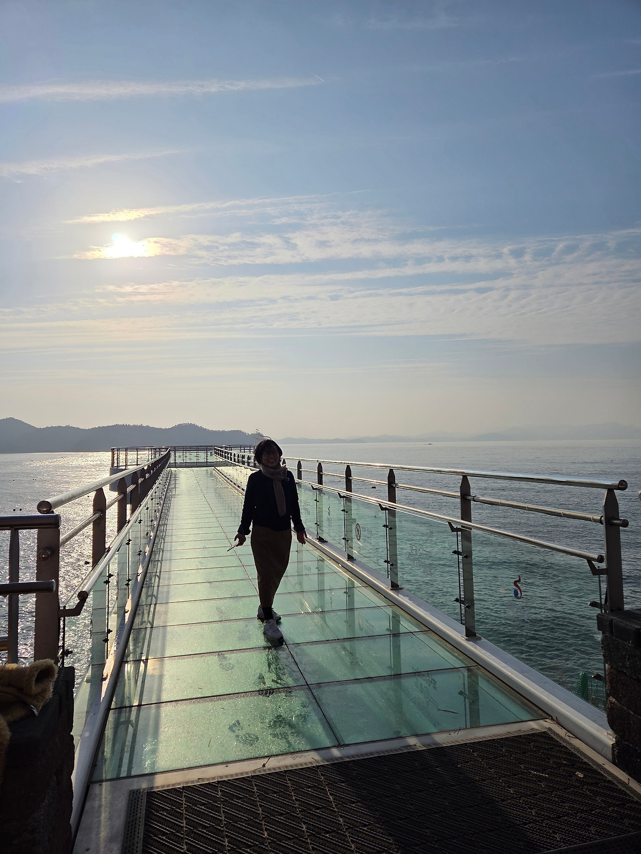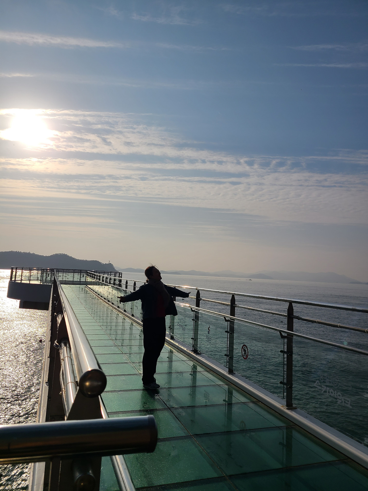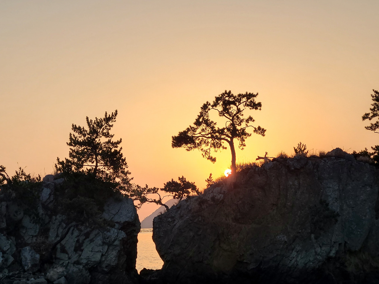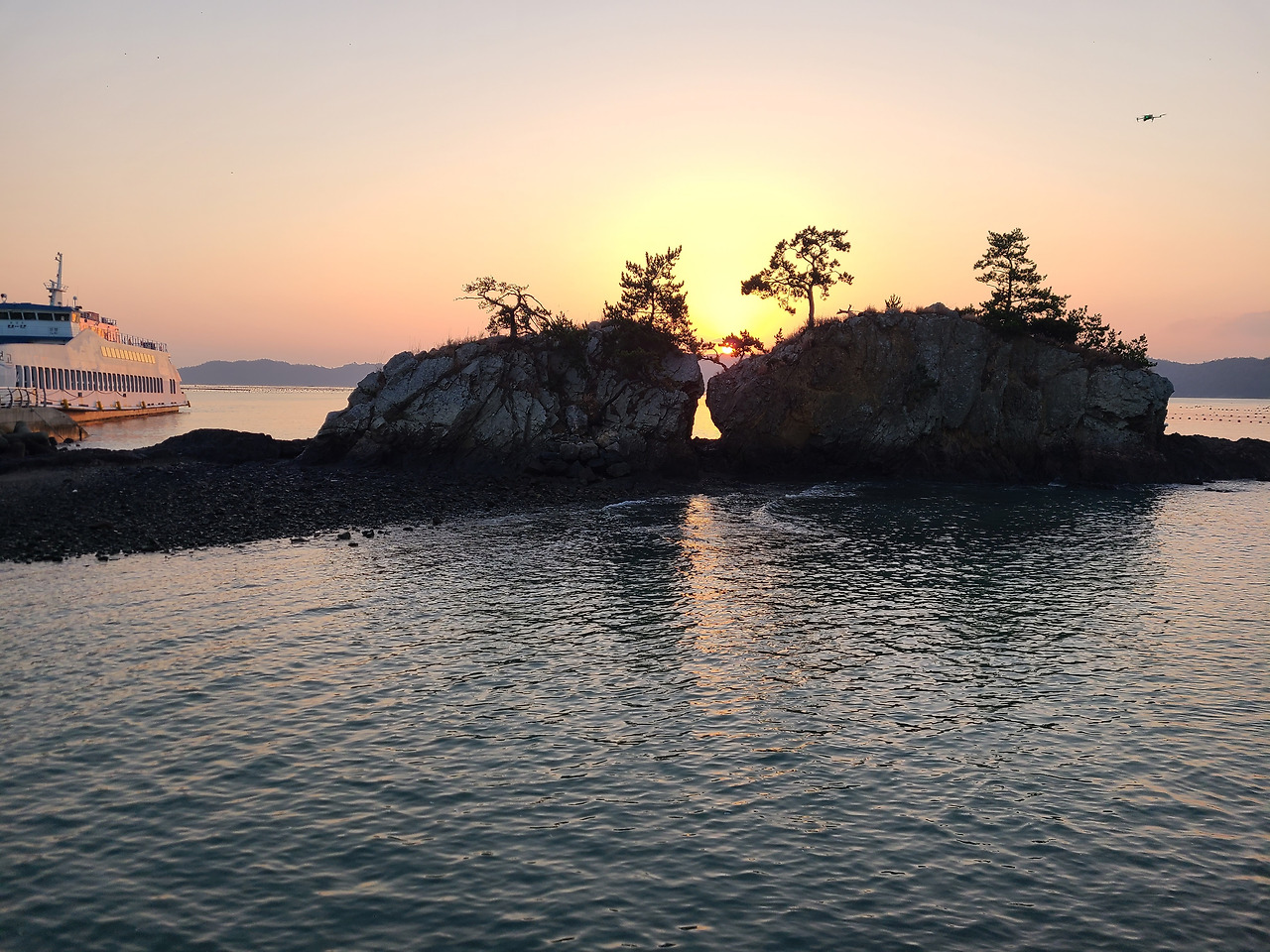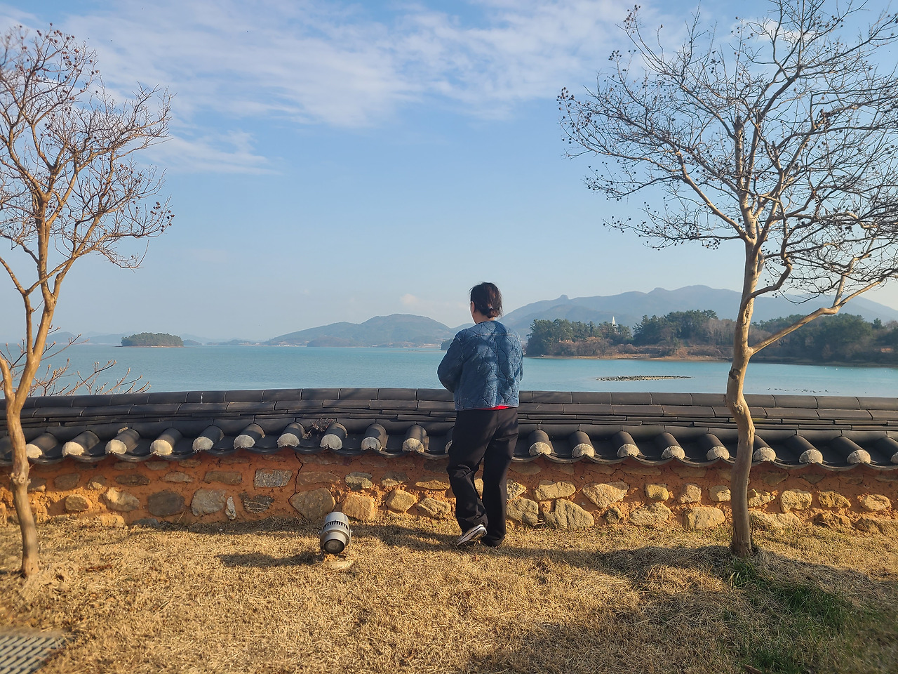 밤새 내린 서리가 코끝을 시리게 하는 다음날 새벽 일출 만나러 맴섬 간다. 맴섬은 땅끝 선착장 앞에 있는 두 개의 바위섬으로 일출과 일몰의 성지며 땅끝 마을의 상징적인 장소다. 일출이 뜨기를 기다리며 맴섬 앞 데크에서 서성인다. 하나둘씩 일출을 감상하기 위해 모여드는 관광객들 사이 갈두마을 이장이라 자신을 소개하며 일출 감상 위치를 알려준다.